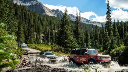 Google Street View covers most accessible areas of the world, as well as a few special places like race tracks, museums, and even the International Space Station. Ford saw an opportunity to help bring the TransAmerica Trail to device screens everywhere. Google's current Street View camera weighs just 15 pounds and will fit any car with a roof rack, so Ford attached one to a Bronco Badlands to bring the entire TAT to Street View. A Ranger Lariat and Expedition Tremor joined the Bronco as support vehicles.