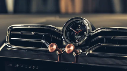 It's worth mentioning that the more expensive Continental GT and Flying Spur both have a center display that can show the infotainment screen or three analog dials — the dashboard has even won design awards because of those customizations. The dials look mechanical but can be adjusted to also show a clock or compass, a chronometer, and the outside temp.