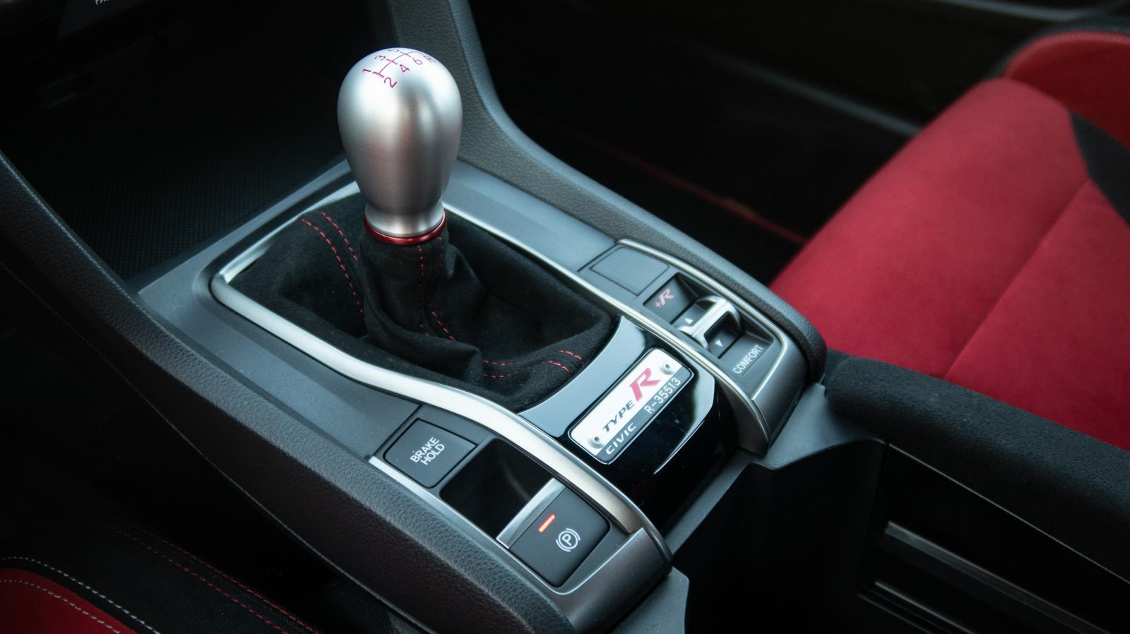 Honda has a well-deserved reputation for building manual-shift transmissions that are joyful to operate and the Civic Type R's is among the best. You've probably read that before, so I'll try to articulate it carefully. Gear changes in this car feel rewarding because the shifter and linkage are designed in such a way that makes gear selection very decisive and precise, without being... difficult. Every notch seems to have a gravitational pull on the lever, which has some weight to it, giving the driver a sense of power.