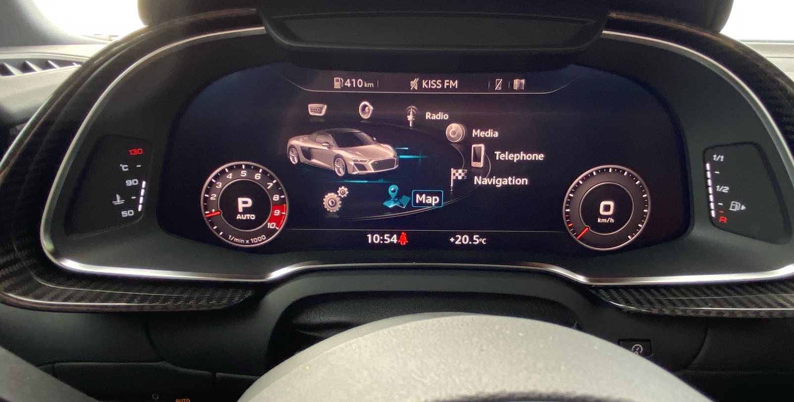 A center-stack screen. Like almost every single car on the market has today. But not the R8 because this is very much a driver-focused car, almost to the point where it's a little bit rude, or at least dismissive, of the passenger.