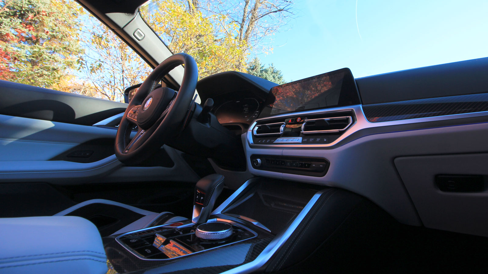 Other than those optional carbon bucket seats, the interior on the M4 Competition is instantly recognizable. It's a cut-and-paste job from every other BMW on sale right now, so there's a 12.3-inch digital instrument cluster and 10.3-inch infotainment display. With a touchscreen doing most of the heavy lifting here, it bodes well for sunny-day drivers that it's nice and bright, and stays clear and readable even with the roof down.
