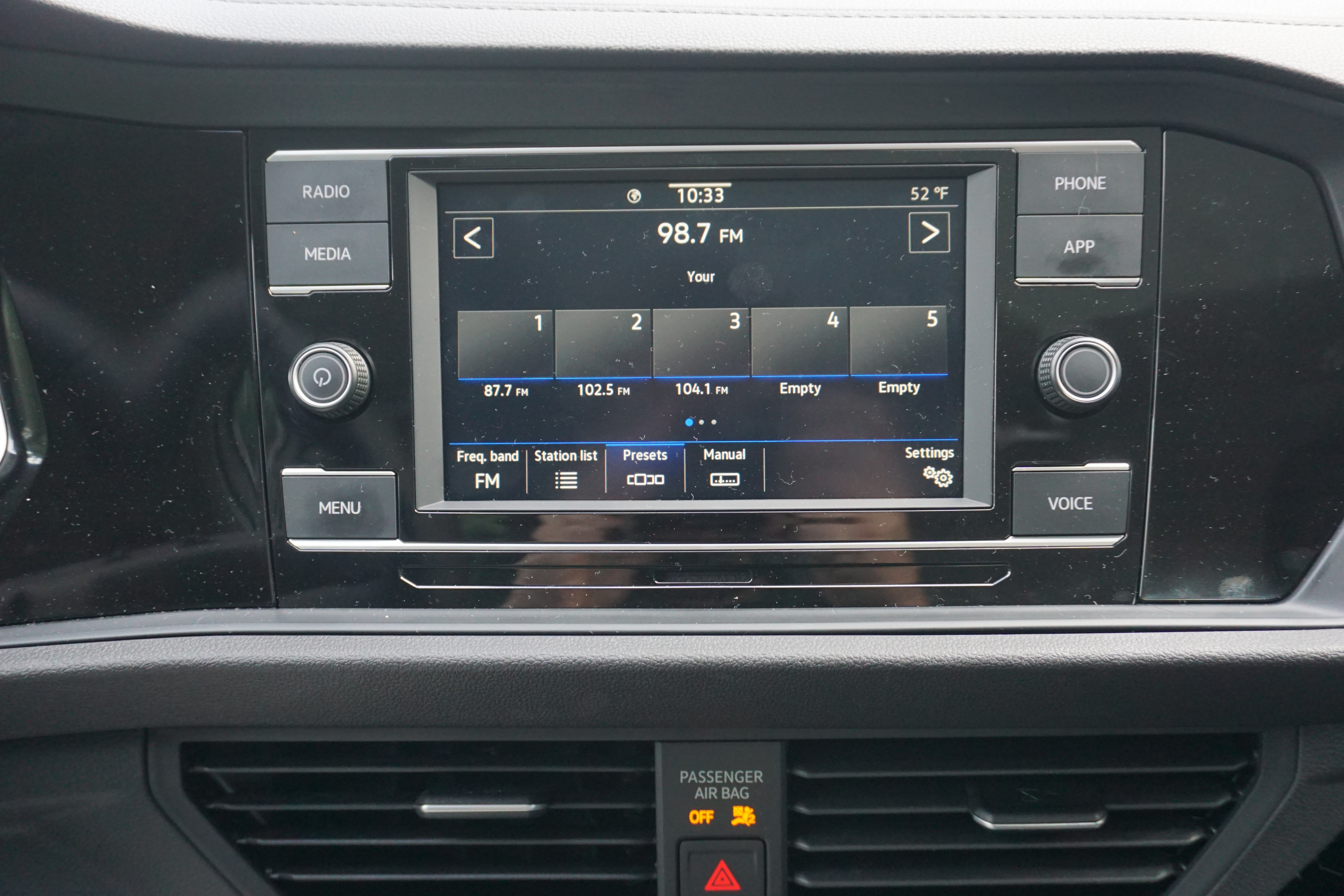 Still, the Jetta does have a few nice features you'll appreciate. There's a smallish 8-inch digital instrument cluster, which cannot really be customized beyond what information is displayed. If you want a bigger 10.2-inch screen, you'll have to spring for a higher trim level. Complementing this is a decidedly small 6.5-inch center infotainment display. It's not flashy, and it's low on features, but you're just going to hook your phone up to it and run Apple CarPlay or Android Auto anyway, right? Unfortunately, there's no wireless smartphone mirroring 'round these parts. You'll have to plug your phone into a USB port the old fashioned way.