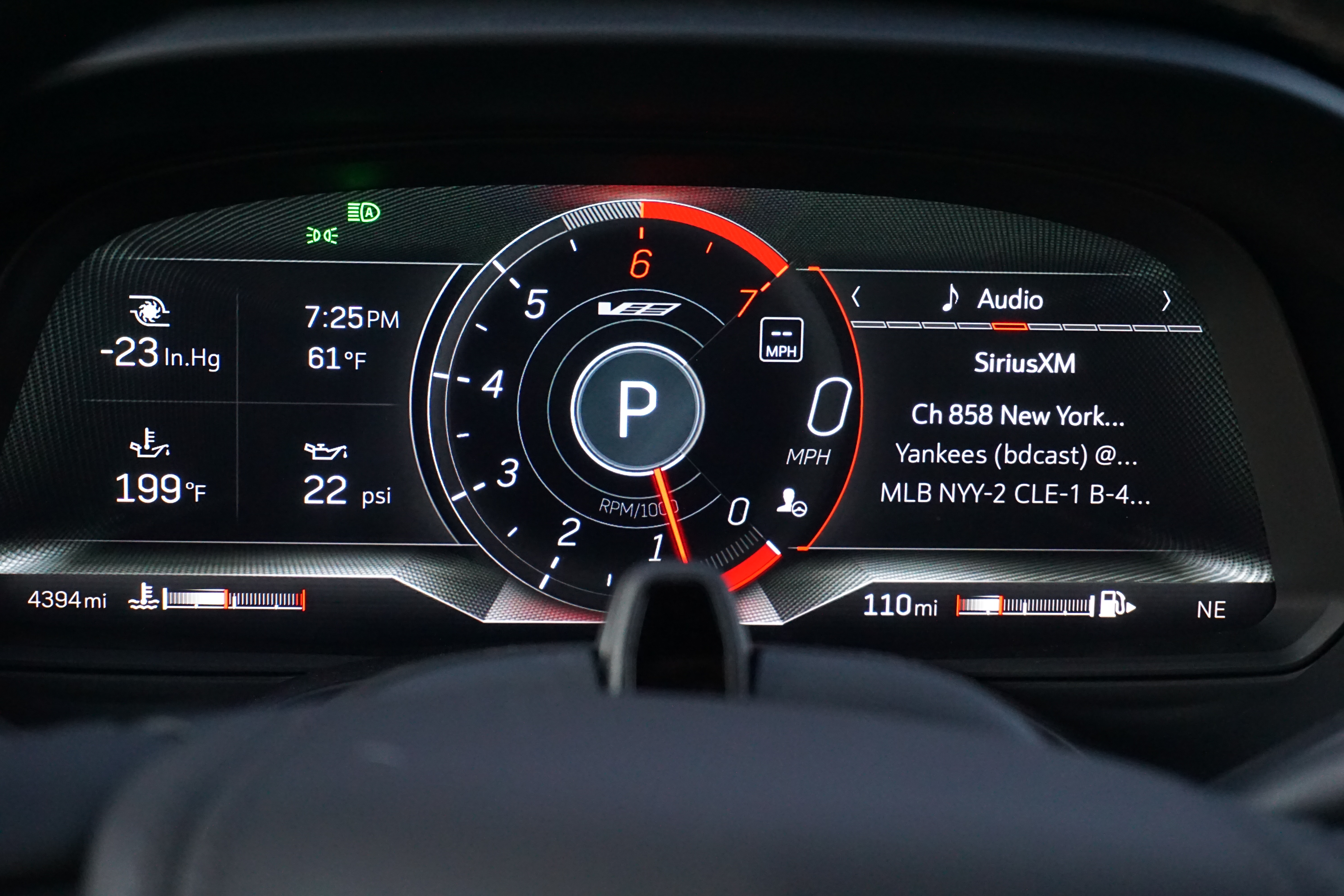 The interior might have issues, but at least the CT4-V's tech is great. One of the first things you'll notice is the extremely high-definition gauge screen. It's customizable, and even has a minimalist mode, which feels like a throwback to Saab's Night Panel.