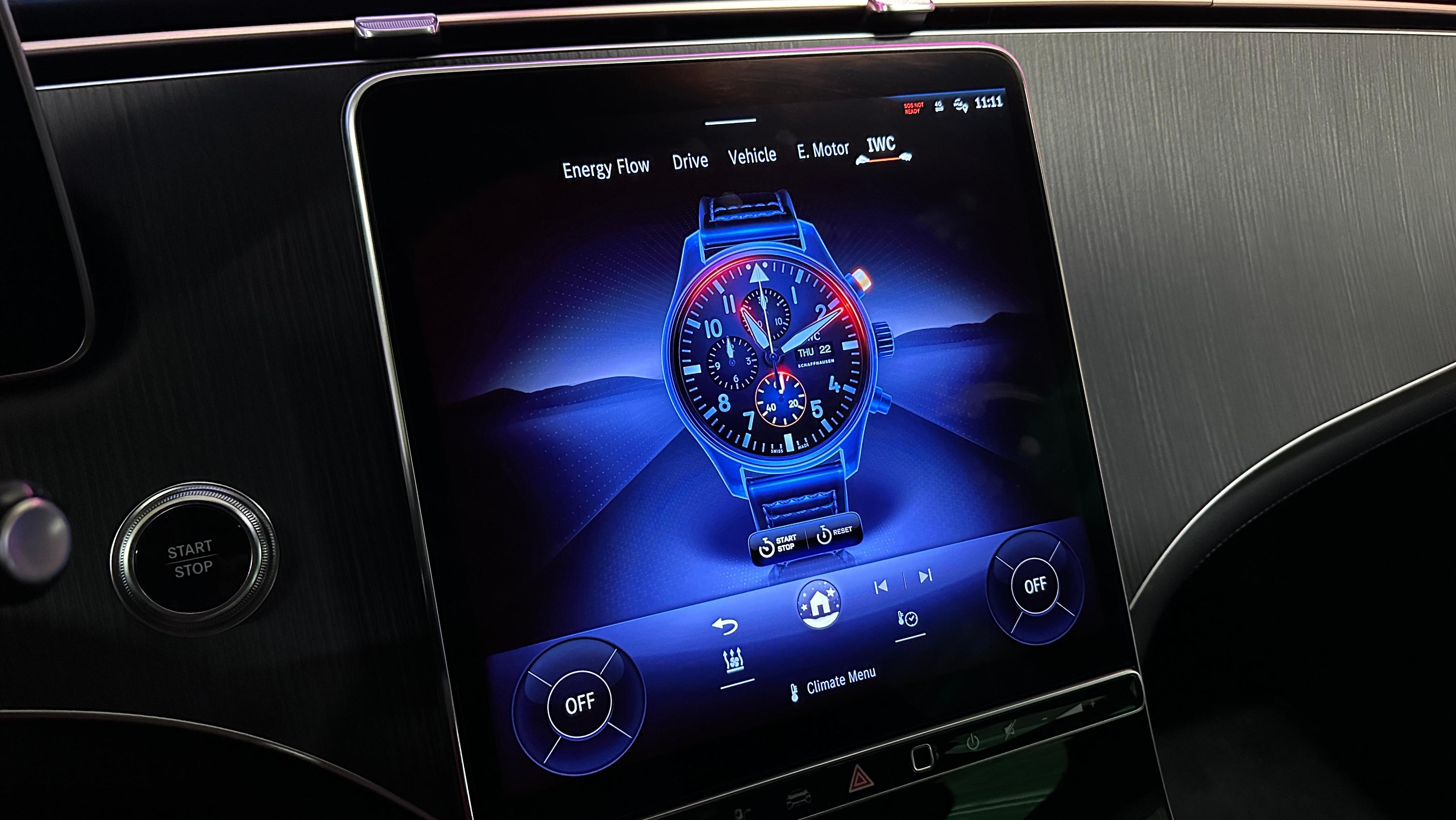 AMG's new electric cars all feature a perfect recreation of a luxury IWC wristwatch in the dashboard touchscreen, complete with stopwatch.