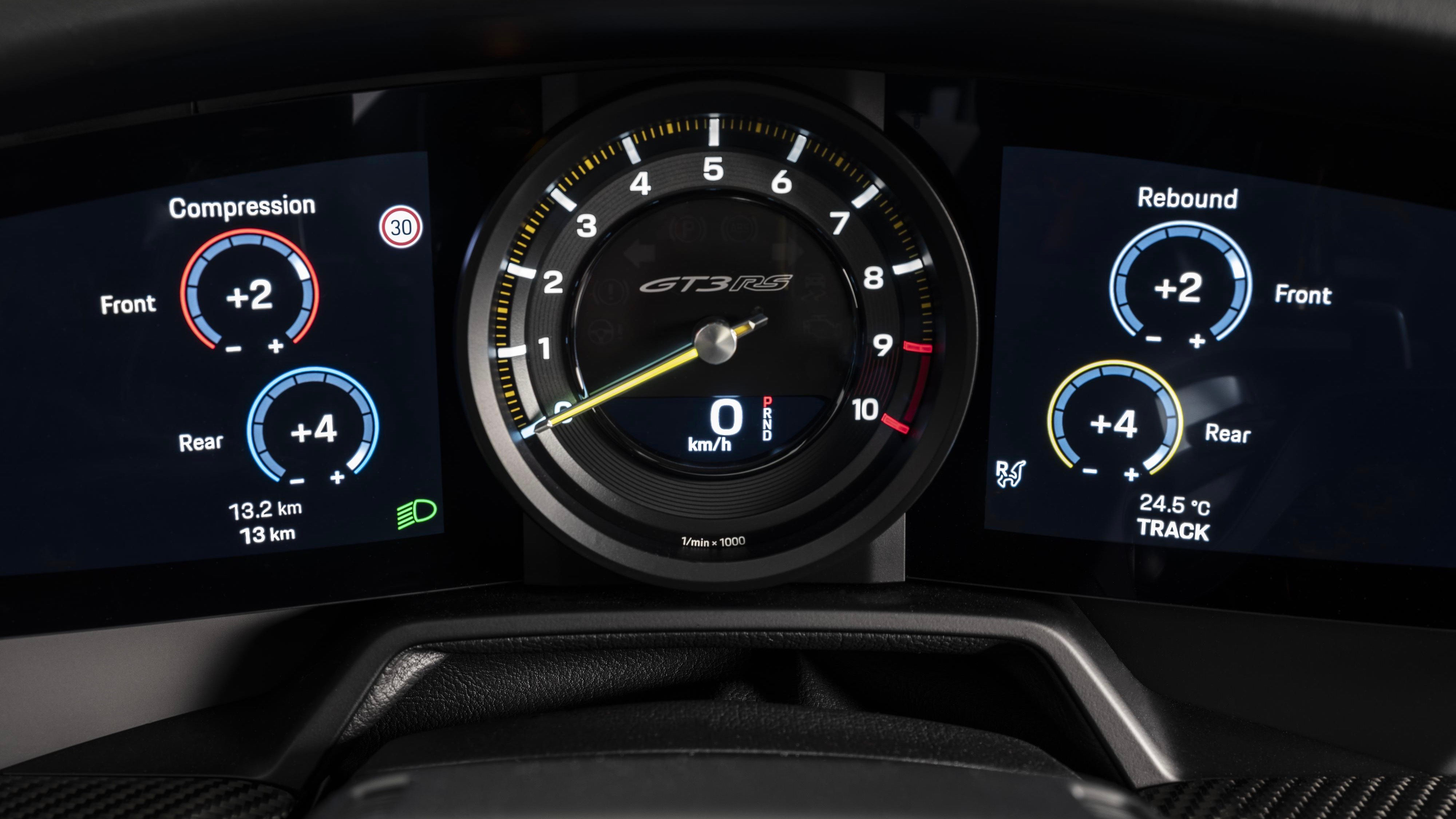 There are three drive modes: Normal, Sport and Track. According to Porsche, in track mode the basic settings can be individually adjusted. Rebound and compression damping of both axles can be adjusted separately in several stages.