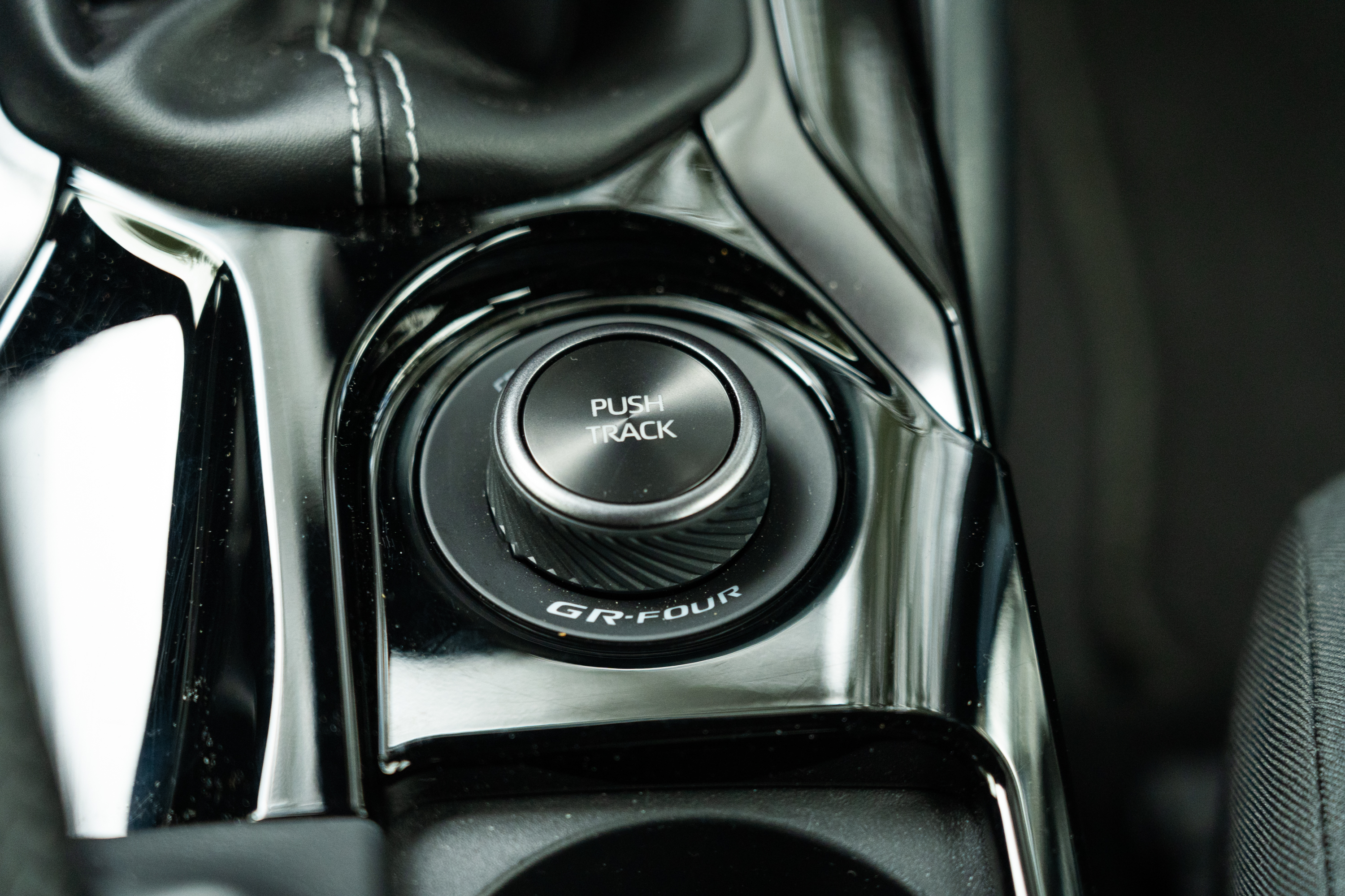 It's controlled through a big, chunky knob labeled "GR-Four" — harkening back to the Celica GT-Four homologation special days of yore. (Fun fact: the hottest Celica GT-Four, the ST205, made 252 hp and weighed 3,064 pounds. Yes, that's 200 fewer lbs than the GR Corolla, but it had 48 fewer ponies, too, and a whopping eight fewer airbags.)