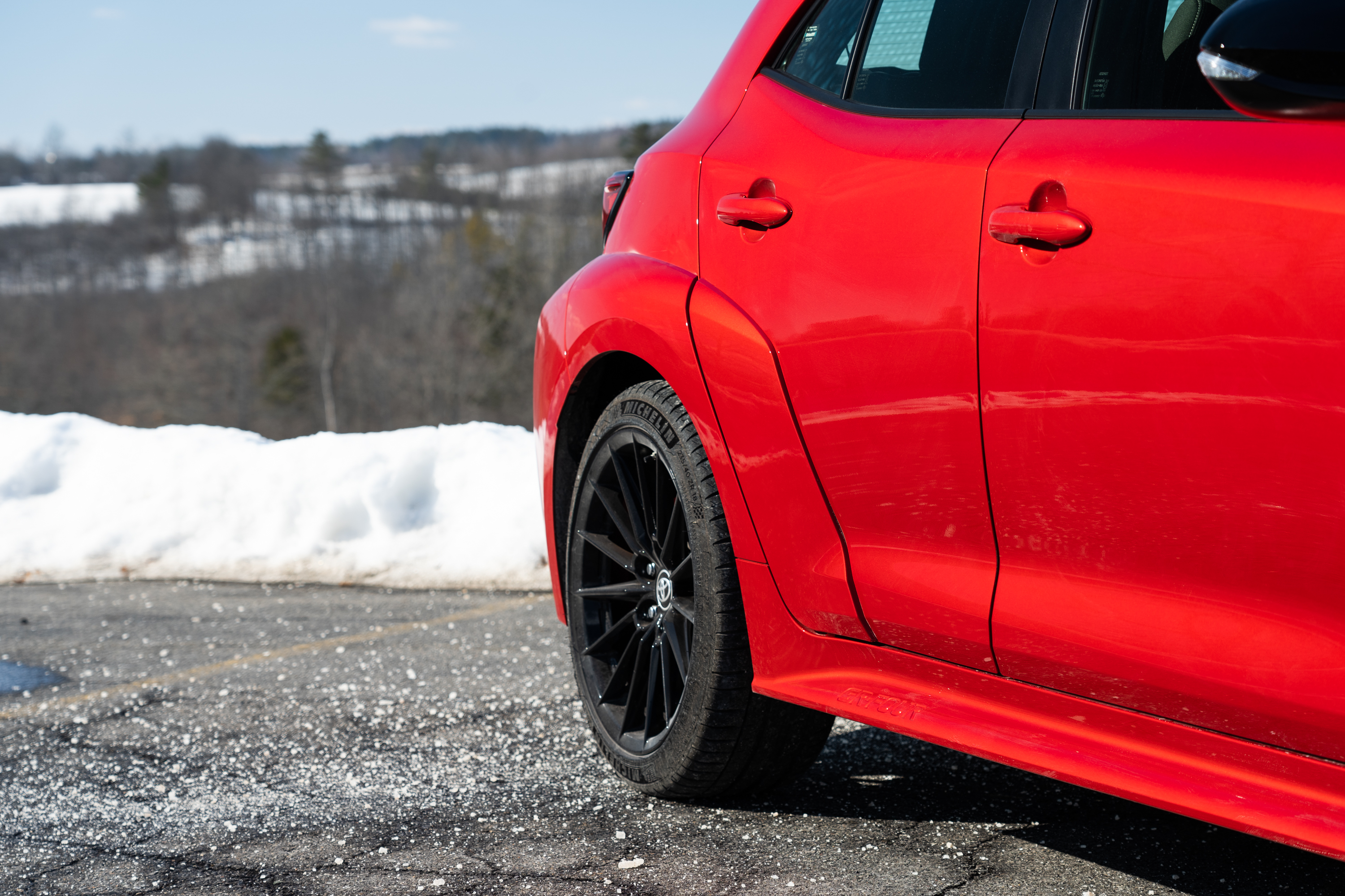 I did most of my testing in near-freezing temperatures on summer tires, so even though I couldn't get this Corolla on ice like I'd wanted to, I still had plenty of situations where grip was at a premium. Helping that was a set of Michelin Pilot Sport 4 tires, each doing its best to hang on despite ambient temperatures on the lower end of ideal. The Corolla stayed poised and in control at all times, any slips easily caught and corrected. The grins, though, were harder to get rid of.