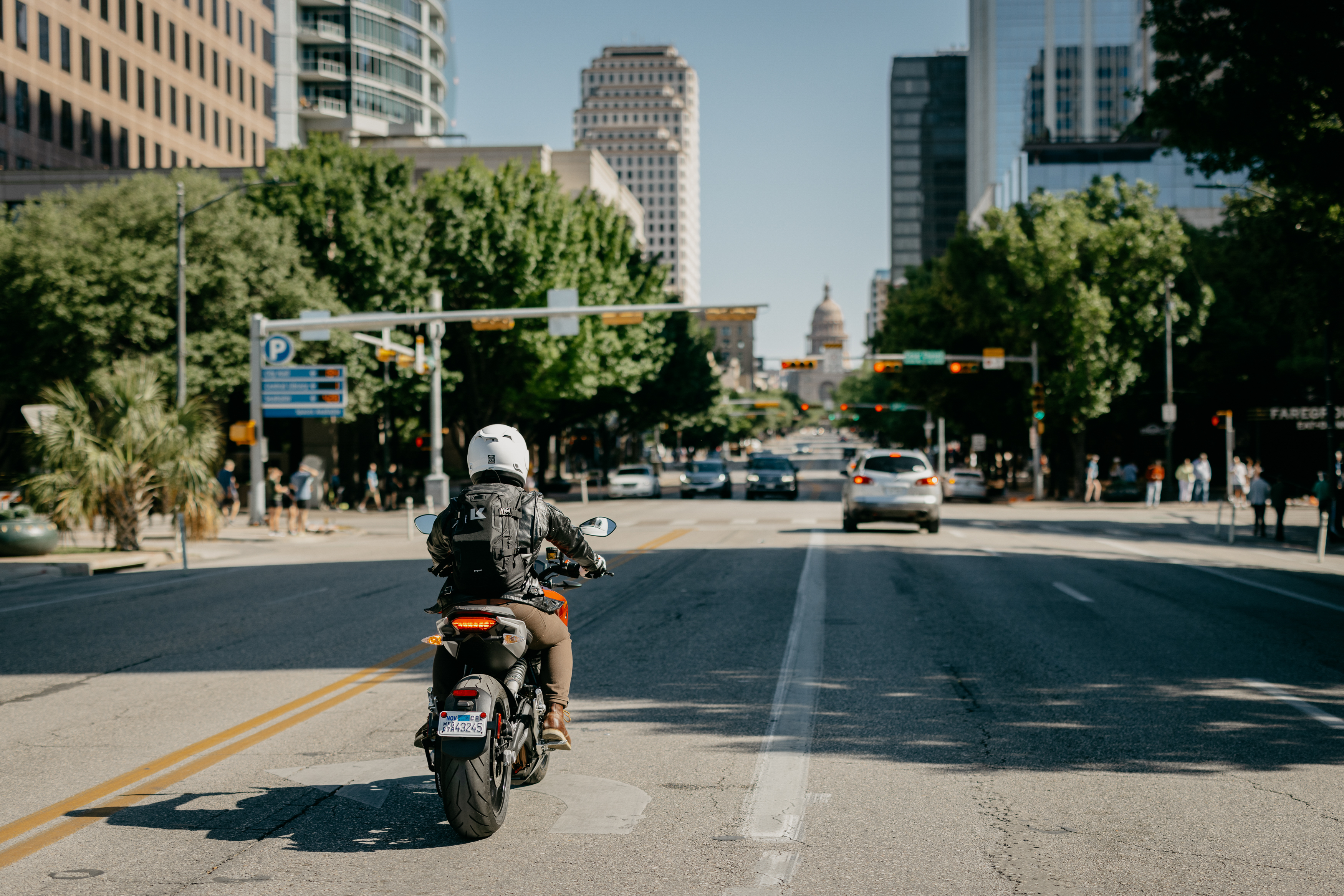 I would come to find out all about the pitfalls of EVs with my riding partner, who was riding a Zero FXE. That model has a shorter range of up to 100 miles in the city, or 57 miles combined. In order to go from South Congress Avenue to the twisties at Lime Creek Road, we'd be riding along a mix of surface roads and highways. Our test ride started out near downtown Austin.