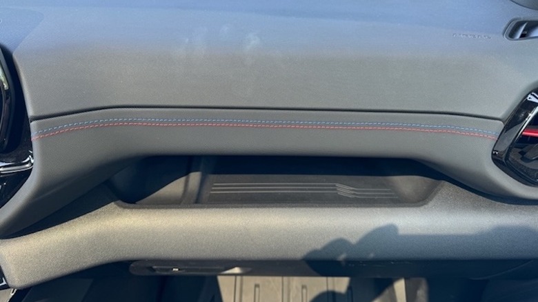 The seats, while heated and ventilated, aren't very supportive and can't be had with real leather. I like the contrasting blue-and-red stitching that's all over the cabin, but on multiple trucks I get into, the stitching is extremely wavy, especially on the passenger side of the dashboard. The cabin is basically devoid of any other interesting trim, with only a few pieces of bright metal or even black plastic.