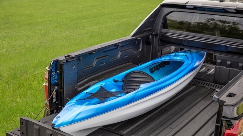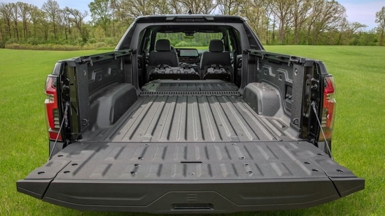 With the Midgate open the Silverado EV has 9 feet of storage between the tailgate and the end point in the cabin, but with the truck's complex (and useful) Multi-Flex Tailgate folded down there's a total of 10 feet 10 inches of length available. Spec a folding tonneau cover and the Midgate becomes even more appealing, letting you carry longer items while protecting them from the elements. Truck customers will also love the powered frunk, which offers 10.7 cubic feet of storage space and has a 120-volt power outlet. There are also four 120-volt outlets and a 240-volt outlet in the bed, and a power bar accessory can be plugged into the charge port for additional outlets.