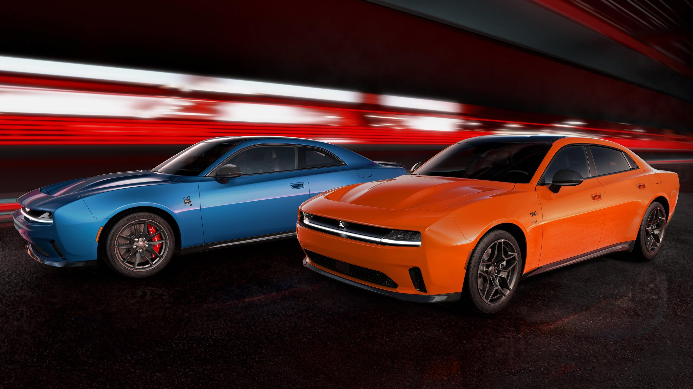 While we don't know the on road and on track driving characteristics of the new two- and four-door Charger Daytona, there are still some boilerplate numbers we can get out of the way. It runs on Stellantis' modular STLA platform, and at launch, it's going to be offered with two trim levels: Charger Daytona R/T and Charger Daytona Scat Pack – not dissimilar to the naming scheme of the older Dodge siblings. Both cars come with a 100.5-kWh battery pack running on a 400 Volt architecture and have a single motor on each axle. Dodge says the motors can generate up to 335 horsepower and 300 pound-feet of torque each, and the rear motor comes with a mechanical limited-slip differential.