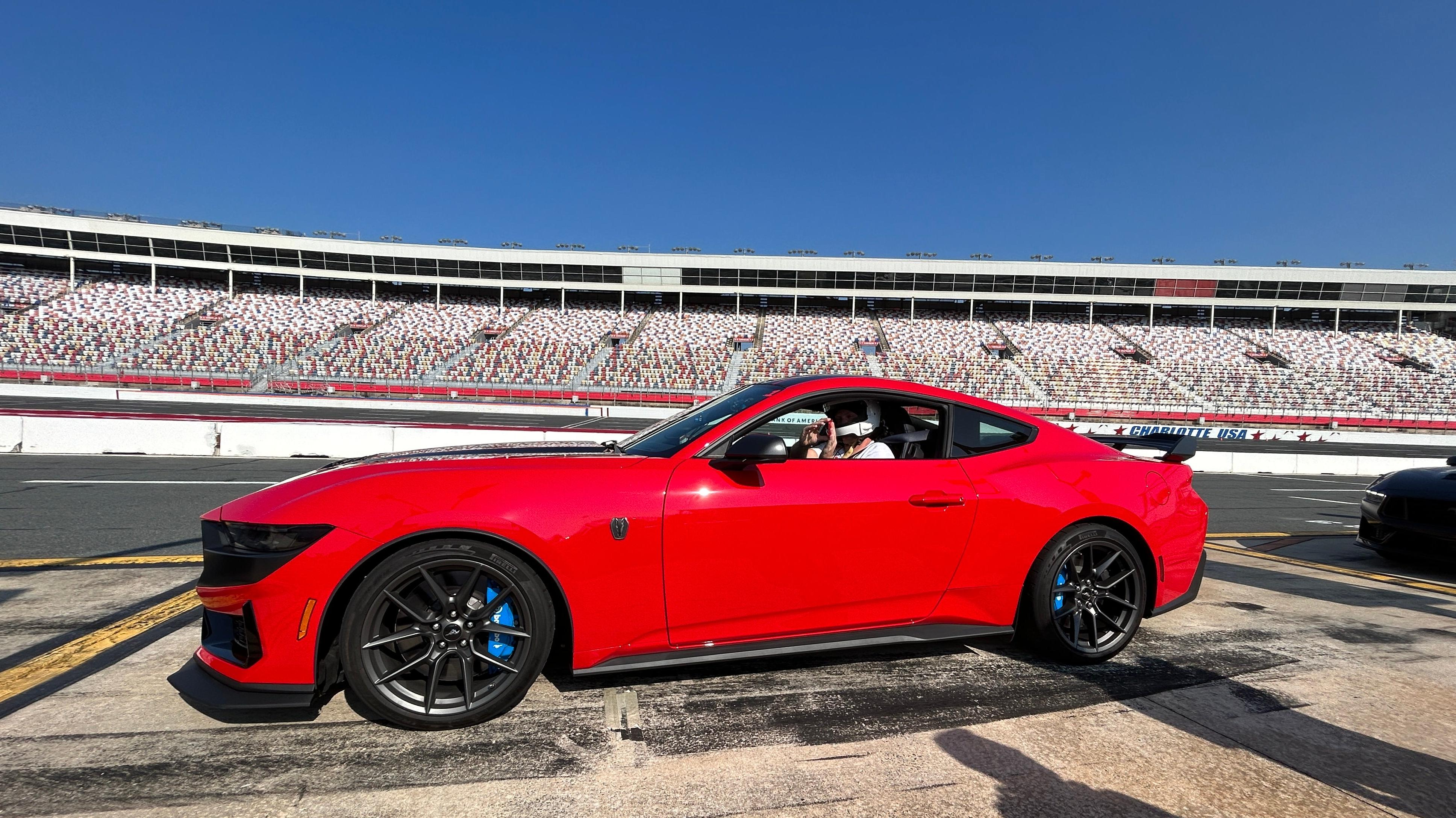 Ford presented its visiting journalists with a fairly decent playground to unleash the Dark Horse's different setups: Charlotte Motor Speedway. Granted, our playground for the morning was a truncated version of Charlotte's roval, bringing us around the oval banking through turn 2 and turning into the road course well before the bus stop. But, the shorter setup certainly didn't take away from the fun of testing this 500-hp monster.