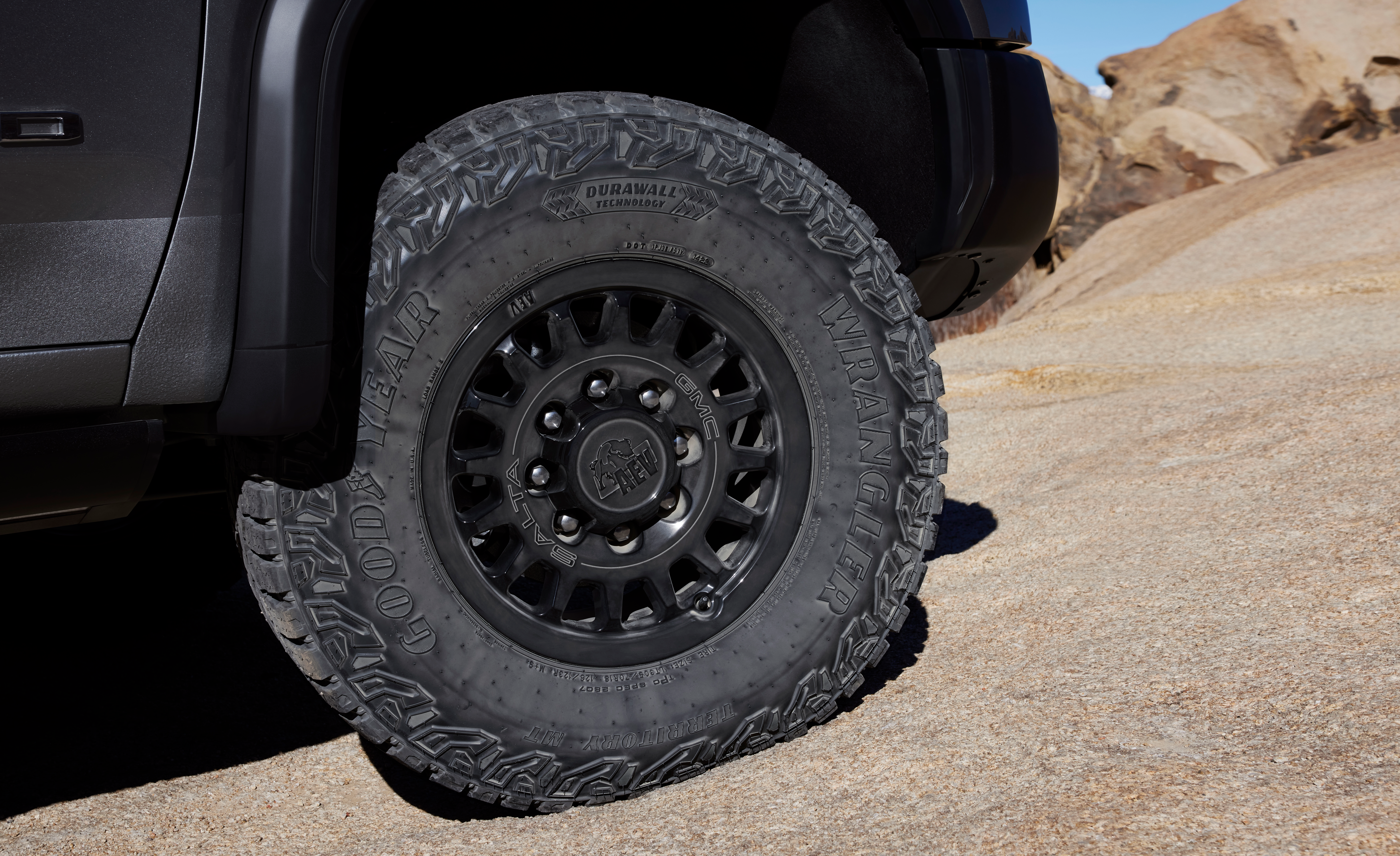 There will also be a Sierra HD AT4X AEV Edition, which builds upon the base model with all the farkles off-roaders yearn for, straight out of the gate. Things like stamped steel bumpers with integrated recovery points and a front winch, steel skid plates to keep the steering gear and transfer case safe, and unique 18-inch wheels bearing the AEV logo wrapped in 35-inch Goodyear mud-terrains.