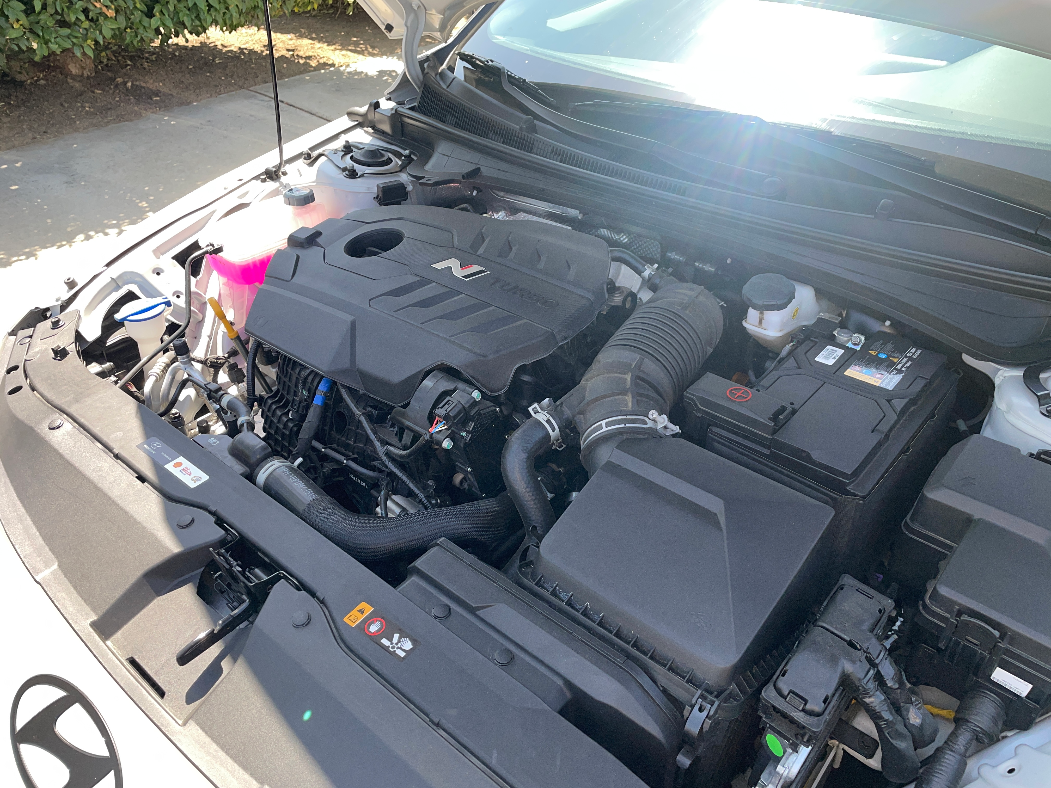 I took the Elantra N to some of my favorite local canyon roads and I can confidently say that it's one of the most capable cars on the market. Nothing that Hyundai's N engineers did here is a gimmick. Take the electronic limited-slip differential, which Hyundai calls the N Corner Carving Differential. When you're powering out of a curve, you can actually feel it working, helping you use the engine's power to pull out of the curve. It's so good that it'll almost fool you into believing that the Elantra N has all-wheel drive in some cornering situations. Its handling is enhanced by high-performance brakes and Michelin Pilot Sport 4S summer tires. The Elantra N's eight-speed dual-clutch transmission's lightning-fast shifts won't make you miss the manual, either. The cherry on top of this performance sundae is hearing the pops and crackles of the Elantra N's variable exhaust system echoing off the canyon walls. It's one of the best sounding stock exhausts on the market.