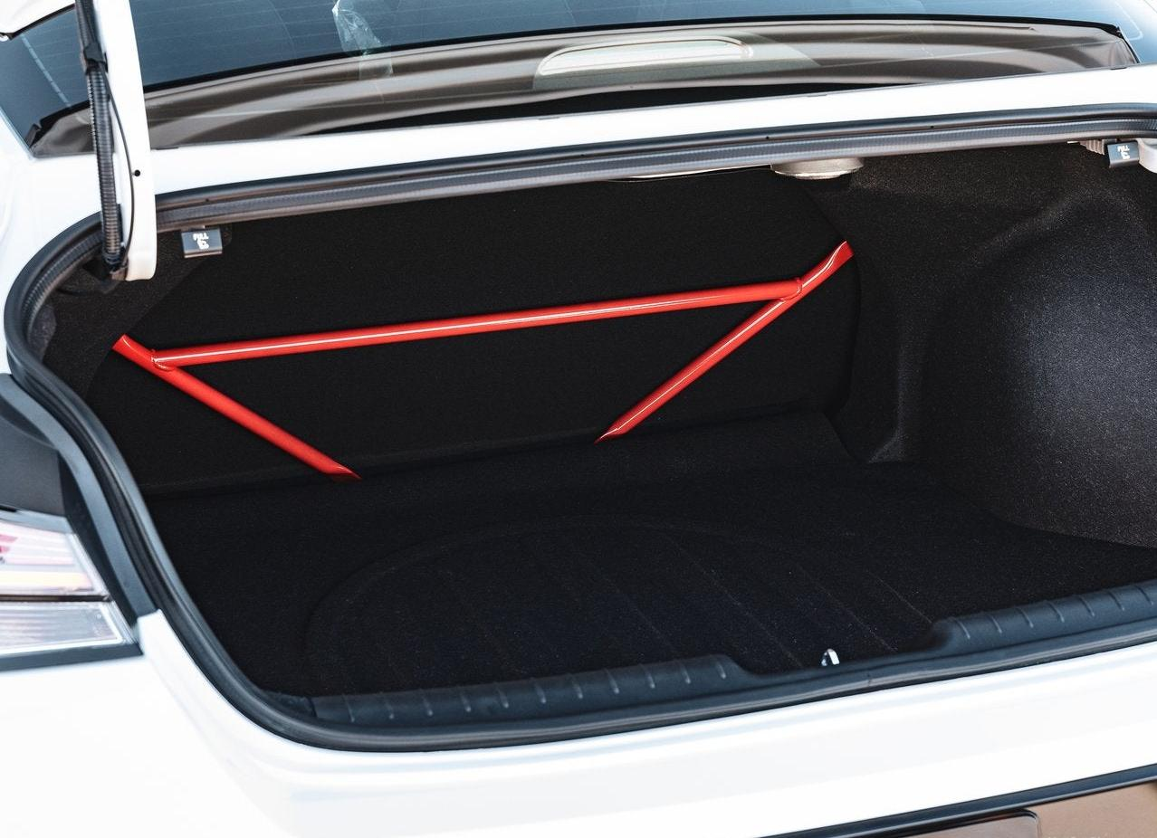 Lastly, while it's a cool feature to have a car equipped with a trunk-mounted rear crossbar, it impedes cargo space. The purpose is for extra chassis rigidity. This also allows for things like lift-off oversteer, making it easy to get sideways in a corner. For everyday use the rear seats do fold for extra room, but you're going to be stuck with trying to fit longer items through the crossbar's open spaces. The bar can be removed, but it requires watching YouTube videos and using some tools that you'll probably have to borrow, though it's said that removing it only requires undoing four bolts.