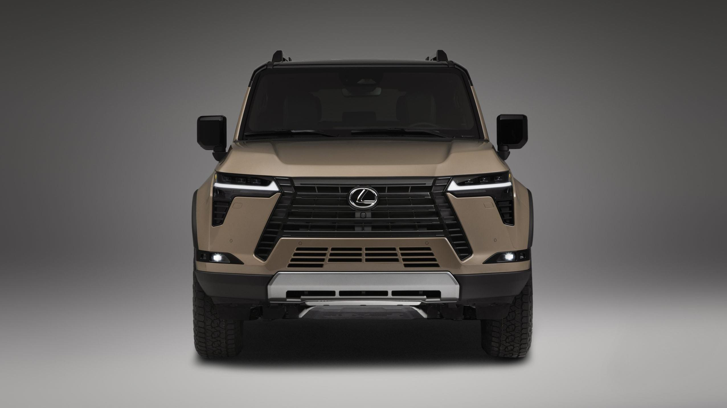 First things first: two-tone paint, or bi-tone as Lexus refers to it, is radical. It elevates the looks of the bland beige that Lexus chose to showcase the new GX Overtrail. The paint finish will only be available on the two top trims, but not only in the beige and black seen here, officially known as Earth/Black Roof. There will also be options for Atomic Silver/Black Roof, Incognito/Black Roof, and Nori Green Pearl/Black Roof. Who knows what "incognito" means, though.