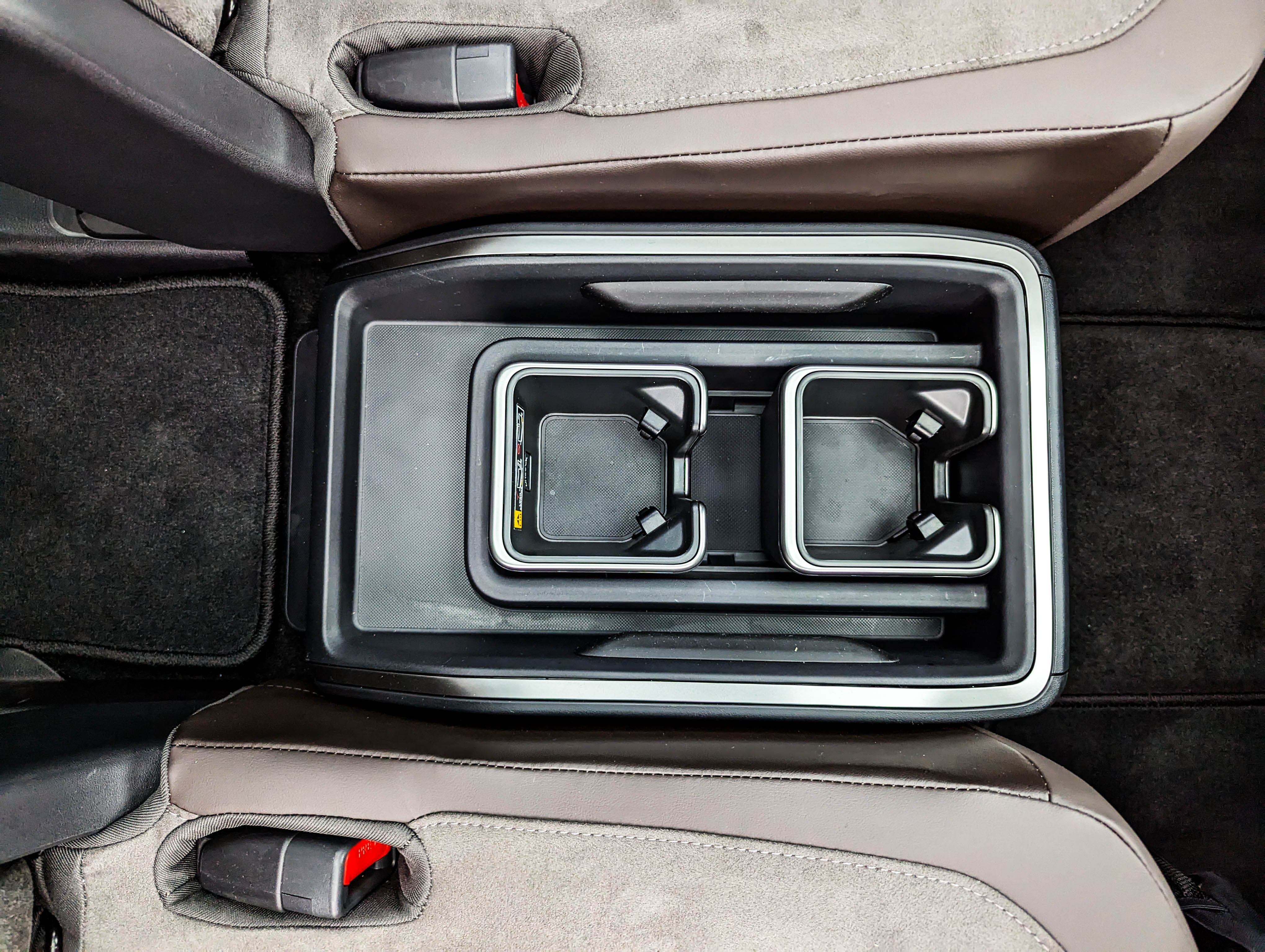 The cupholders, too, are removable and adjustable. Press the 'release' button in one of the cupholders, and you'll be able to pull it entirely out of the center console. When Alanis needed somewhere accessible to store her camera, we were able to pop one of the cupholders out to place it there. I'm one of those people that really only ever needs a single cupholder; any extras inevitably get used for storing my vast collection of knick-knacks and treasures (i.e. my phone and wallet). Being able to just pop out a cupholder to give yourself a totally different kind of storage space was very soothing to the part of my dragon brain that enjoys having a wide variety of places to put things.