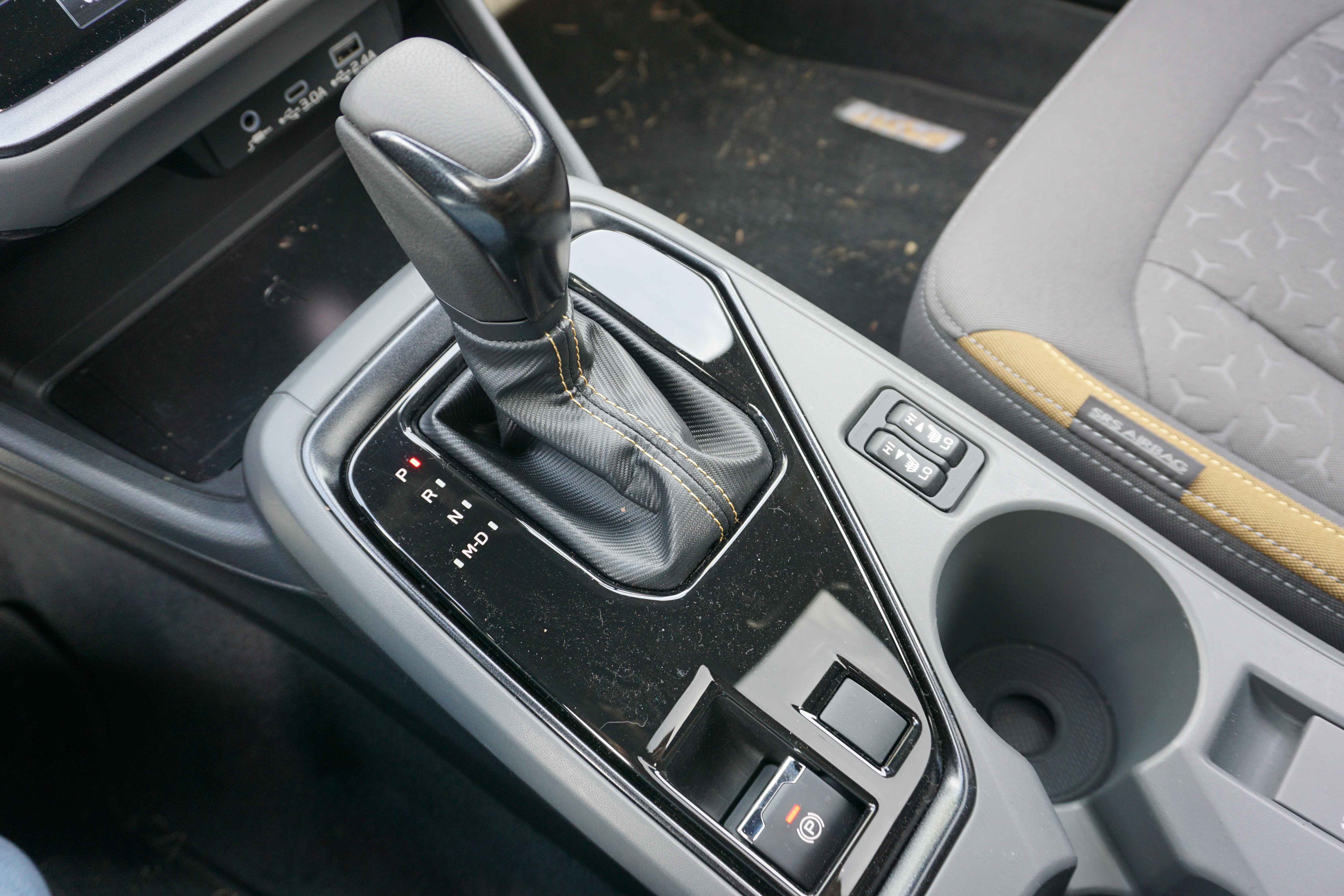 Subaru pairs the larger engine with its fairly well-tuned continuously variable transmission. The CVT is fine; it completely falls to the background. There's very little of that classic CVT drone you get when you mat the throttle, and it doesn't really do any simulated gear shifts, though you can theoretically fake 'shift' the thing with steering-wheel-mounted paddles or by using the gear lever itself. Subaru says this is useful for relying on engine braking while going down steep grades, so I guess I'll allow it.