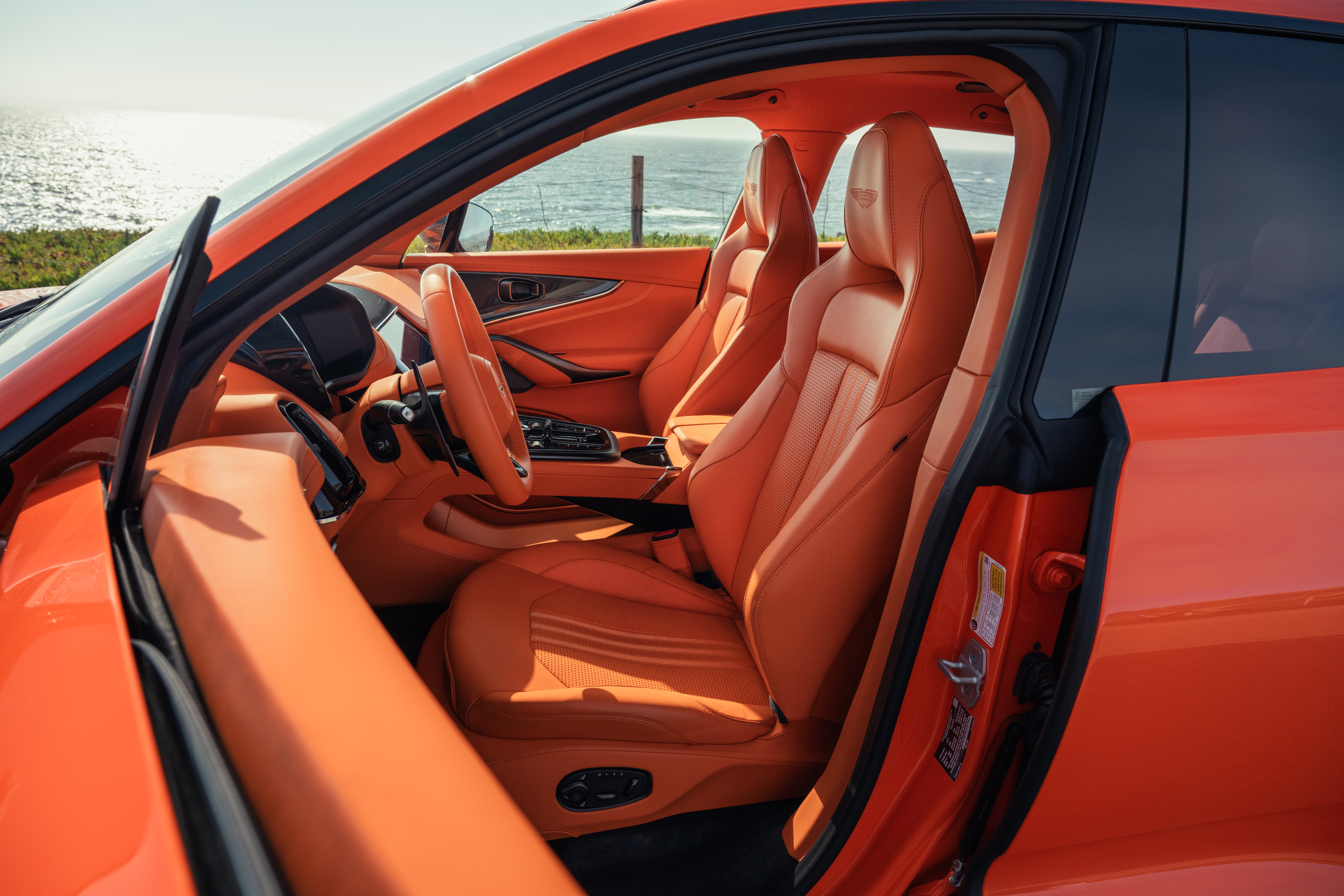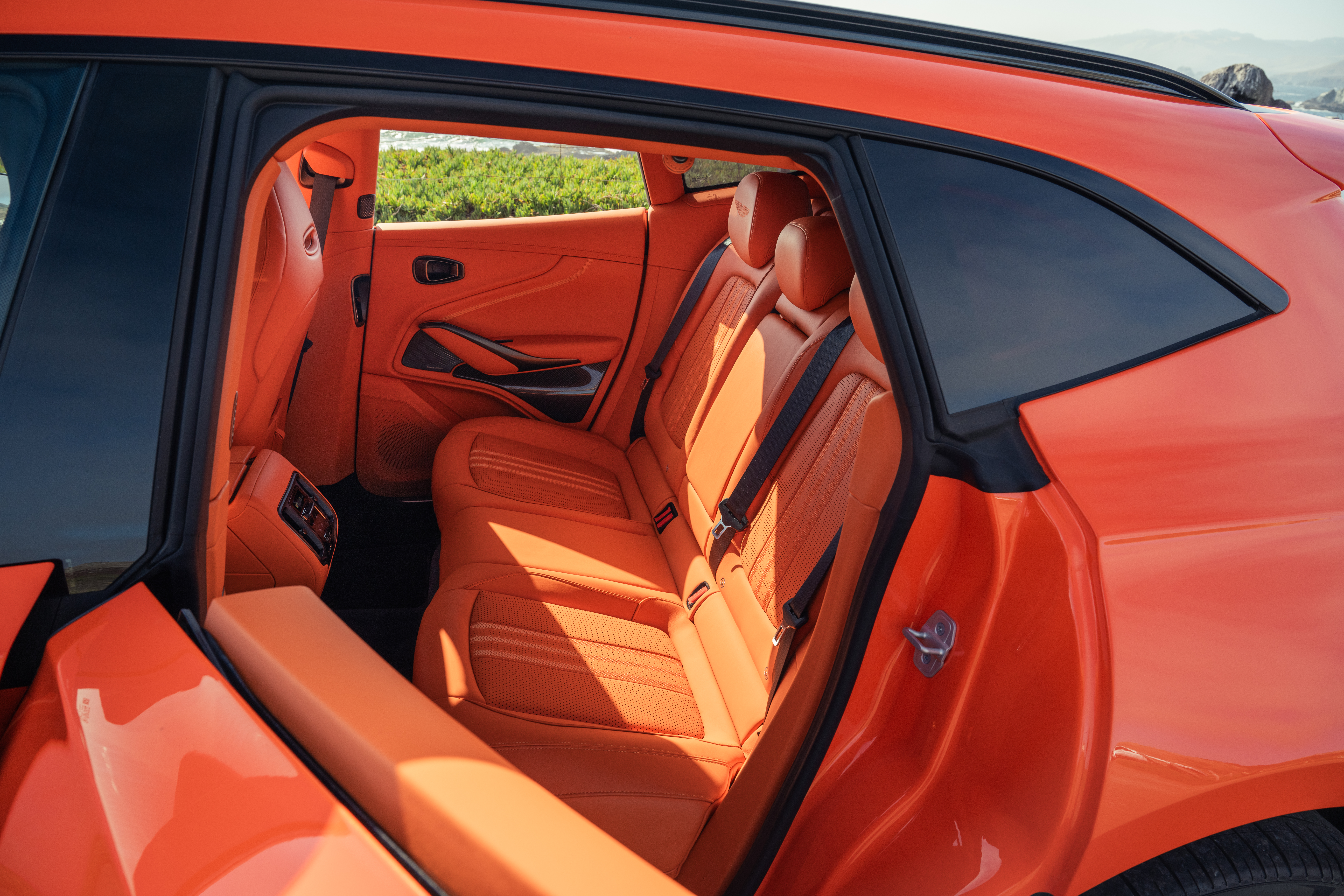 Much of the DBX's updated cabin components are shared with the DB12, the comprehensive facelift to the DB11, but the DBX's dashboard, center console and door card designs are all its own, and totally redesigned compared to last year's model. Centered in the dashboard is a new 10.3-inch infotainment screen that is finally touch-operated, ditching the old Mercedes Comand–derived system with a rotary knob and button array. Its totally new software is an in-house Aston development that is way better than the generations-old Benz stuff, with cool graphics and fairly straightforward menus.