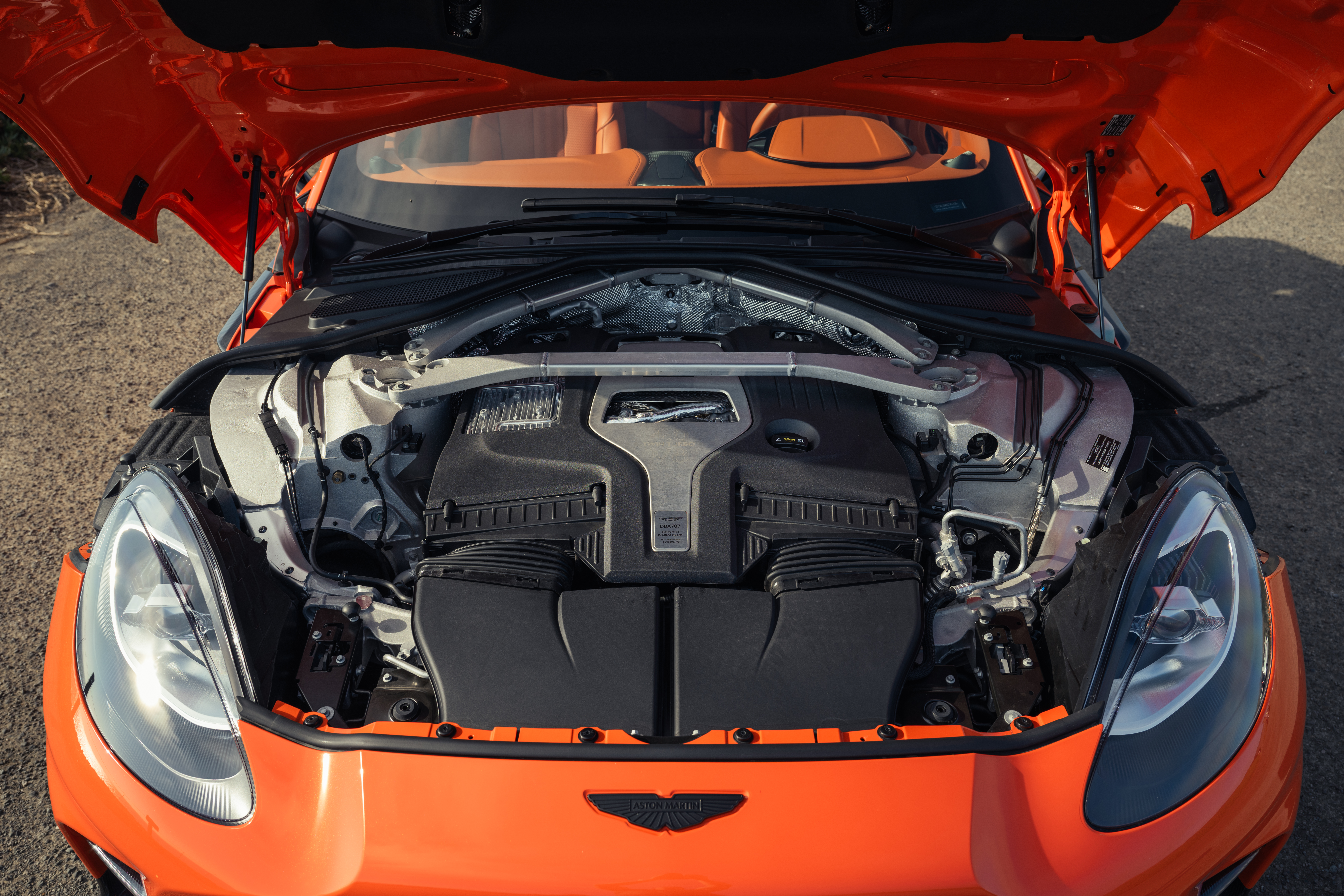 Aston's designers did a better job utilizing the surprising amount of cabin space, with larger storage cubbies, a repositioned wireless charging pad and better cupholders, plus a new open area underneath the center console. The seats are super supportive, and even with the sloping roofline there's plenty of head- and legroom in the back seat. The new interior has a more liberal use of cosmetic trim pieces made from aluminum or carbon fiber or wood, beautiful contrast stitching and piping patterns, and color-matched leather on more surfaces (if you pay up for it). Also new are the air vents, door handle pulls, speaker grilles and other details. Overall quality feels improved, both in terms of materials and how it's all put together.