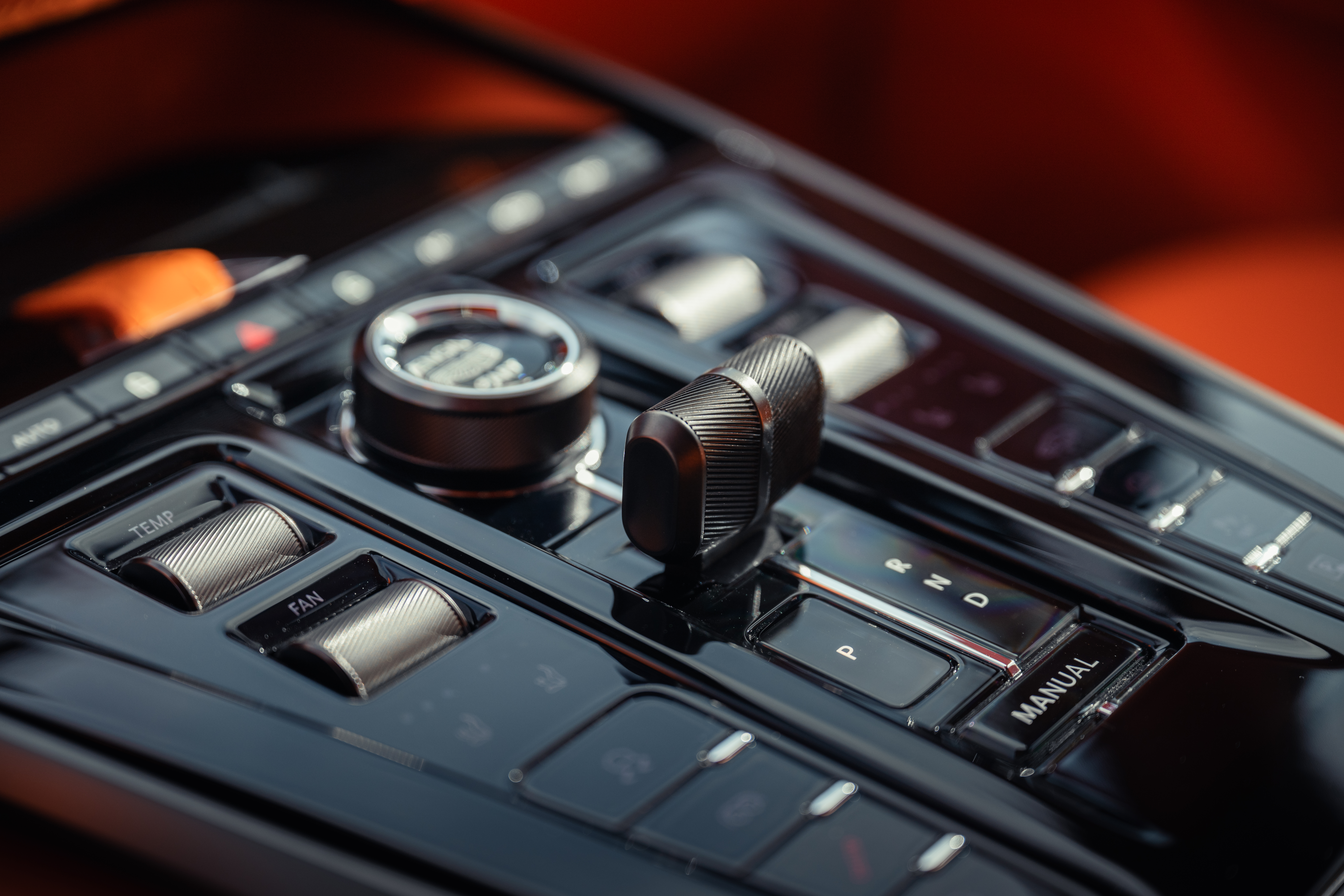 You no longer shift gears by pressing buttons set at a far reach above the screen; instead, the updated DBX has a chunky metal toggle shifter in the center console, set right behind a new start/stop button that doubles as the drive mode selector. There are four barrel-shaped knobs for the volume, temperature and fan speed, plus a row of buttons for stuff like the windshield heater and recirculation, though most of the climate controls are accomplished through an infotainment page that's easy to bring up. Further back on the console are a bunch more hard buttons for performance features like the exhaust and suspension. All of the new controls feel nice to use, especially the hefty drive mode dial.