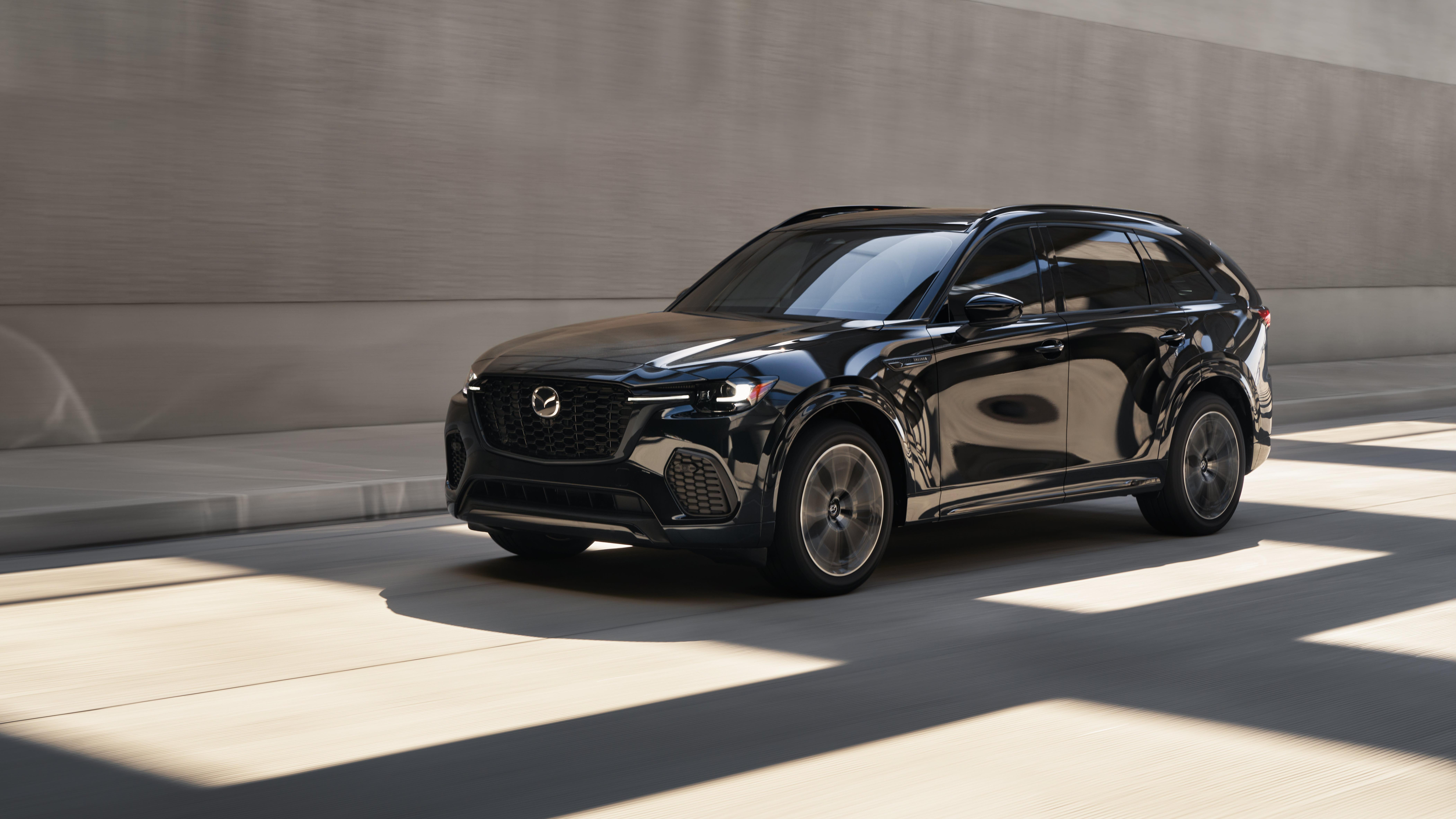 Pricing on the CX-70 plug-in trim is also identical to the CX-90 PHEV. The CX-70 PHEV starts with the $55,775 CX-70 PHEV Premium. That gets you the plug-in hybrid setup with 26 miles of electric driving range, 3,500-pound towing capacity, 21-inch wheels, LED head and tail lights and black exterior touches on places like the mirrors and roof rails. The top of the CX-70 lineup is the $58,825 CX-70 PHEV Premium Plus. This gets you the PHEV Premium's features plus Nappa leather seating in a trim-exclusive tan color, suede dash inserts, two-tone leather-wrapped steering wheel and a cargo area power outlet capable of 150 watts.