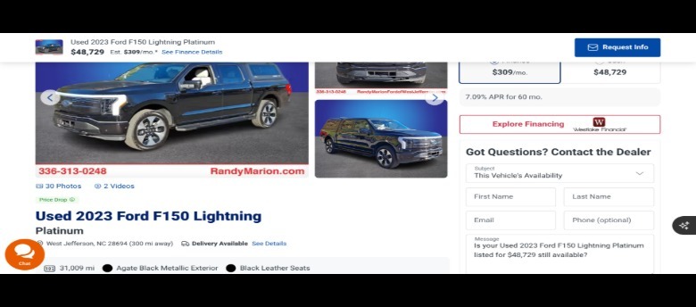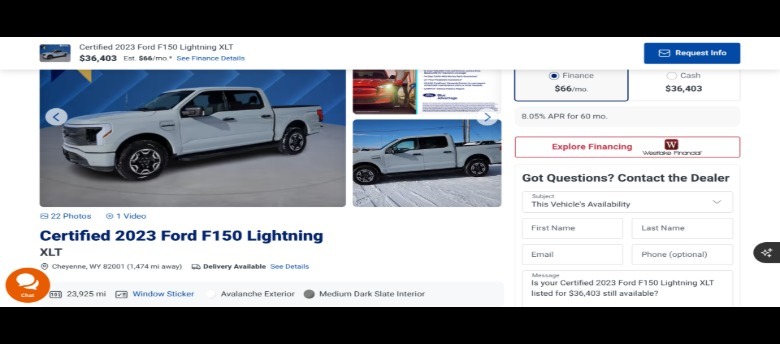 Here is a 2023 Ford Certified Lightning XLT with 23,000 miles for $36,403.