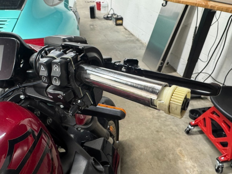 Sometimes you have to tear something down so you can rebuild it again. After disassembling the handlebar switchgear on both sides, I started this process by cutting the left grip off and cleaning up the glue that Harley used to keep it in place. The right side came apart much easier, but my stomach dropped a little bit when I pulled it off. Oh, the new grips I bought won't work for this, because it's an electronic throttle grip with a geared end. Back to the drawing board.