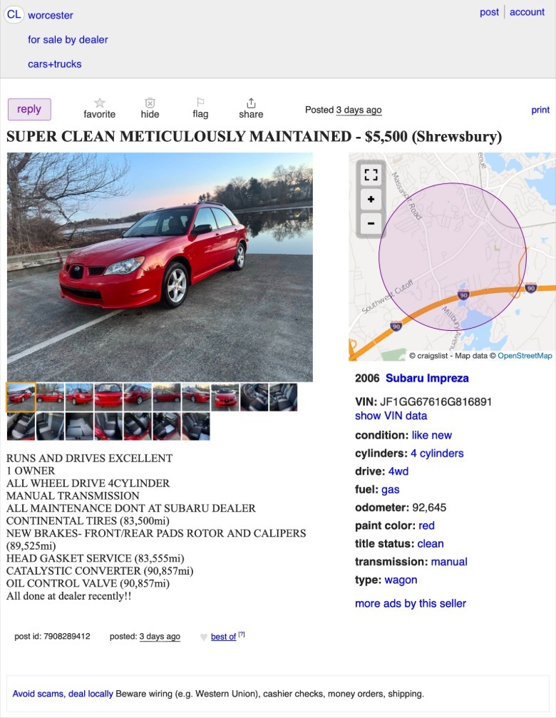Worcester, Massachusetts, Craigslist, or go here if the ad disappears.