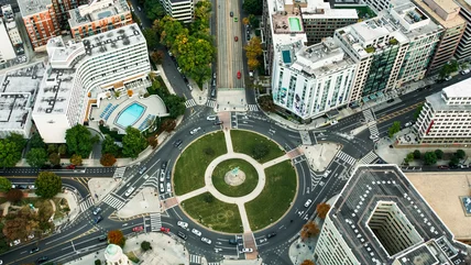 Roundabouts are known by many names such as a "roundyrounds," rotaries, and traffic circles, among other names. In case you've never navigated one, it's essentially an intersection with no traffic lights in which drivers travel around a circular road that features exits splitting off. When viewed from above, it can look similar in shape to a giant wheel — and the rules for moving through one are different from straight-on streets.