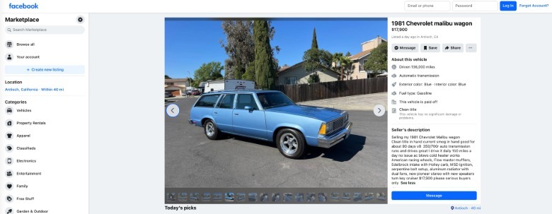 Facebook Marketplace out of Antioch, California, or go here if the ad disappears.