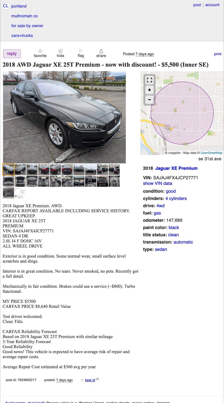 Portland, Oregon, Craigslist, or go here if the ad disappears.