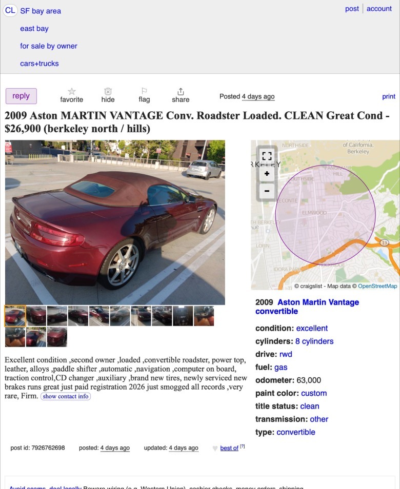 San Francisco Bay Area, California, Craigslist, or go here if the ad disappears.