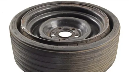 There's some sort of enthusiast community surrounding these tires, too. A listing online is asking over $1,150 for the 14-inch space saver. There's also currently one for sale on eBay for $500, and it includes an orange rim!