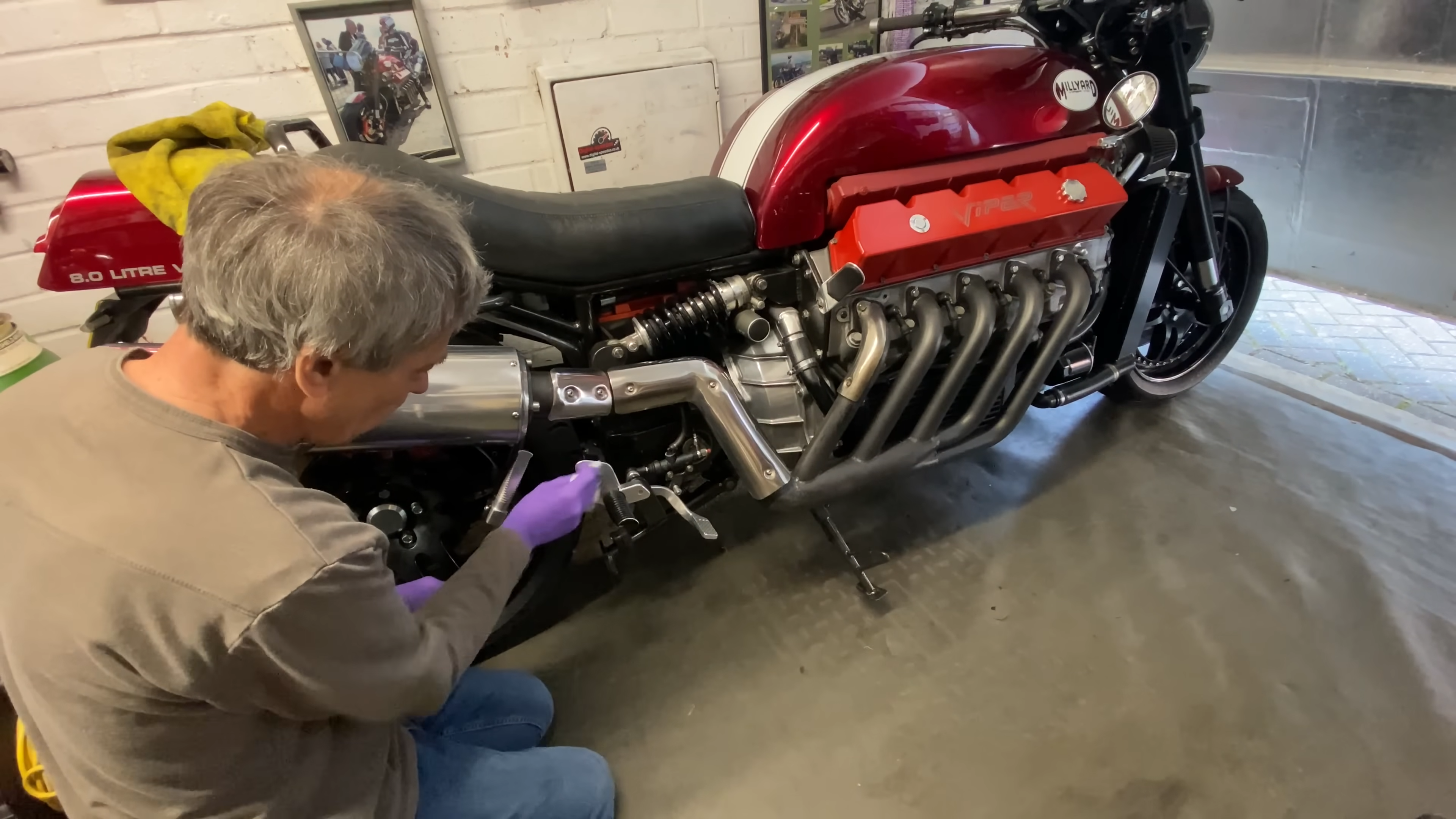 For Allen Millyard, that wasn't enough. He built a functional bike around the Viper's engine, and has now proven that his design is something the Tomahawk could never be: Practical. See, Millyard's bike isn't just big and loud, it's also capable of carrying passengers — at over 180 mph.
