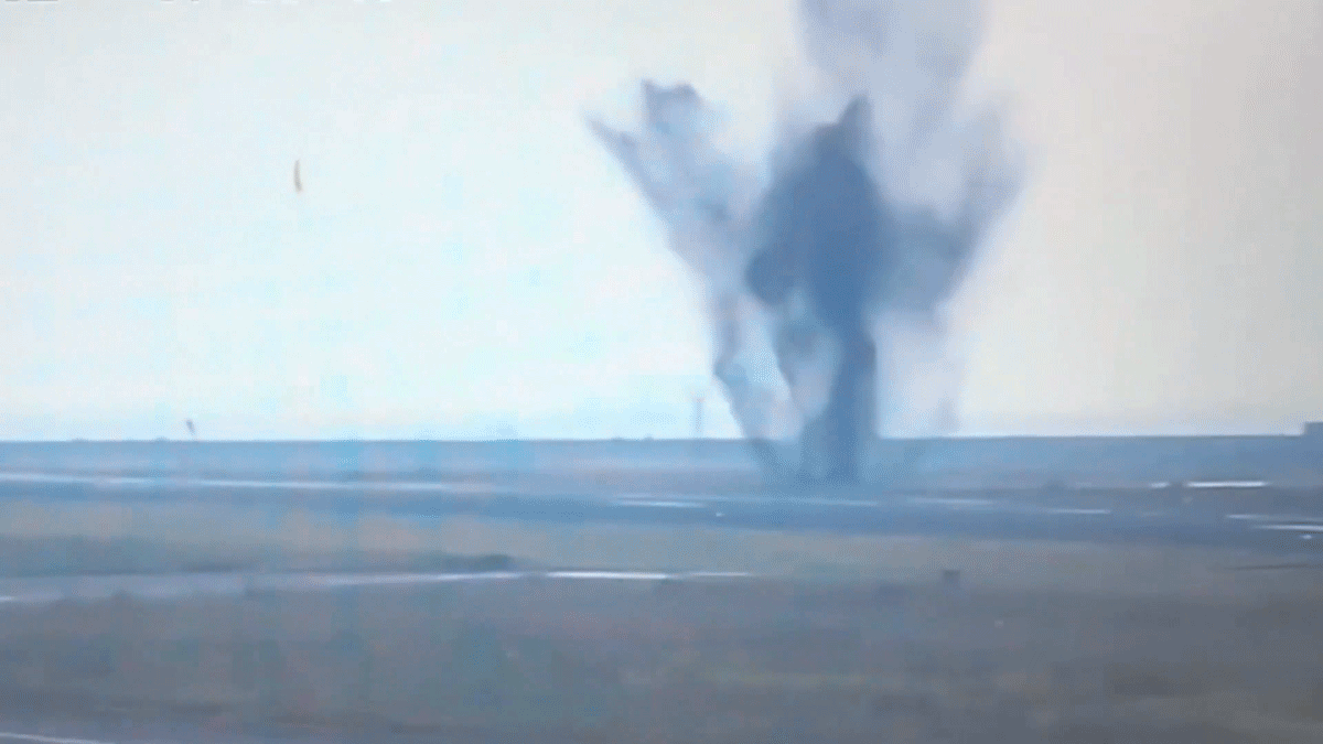 The 500-pound bomb was embedded in the ground under a taxiway at Miyazaki Airport in southwest Japan. The airport's CCTV cameras captured the blast. While a civilian airport today, the site opened as a pilot training base for the Imperial Japanese Navy in 1943 and became a kamikaze base in 1945.