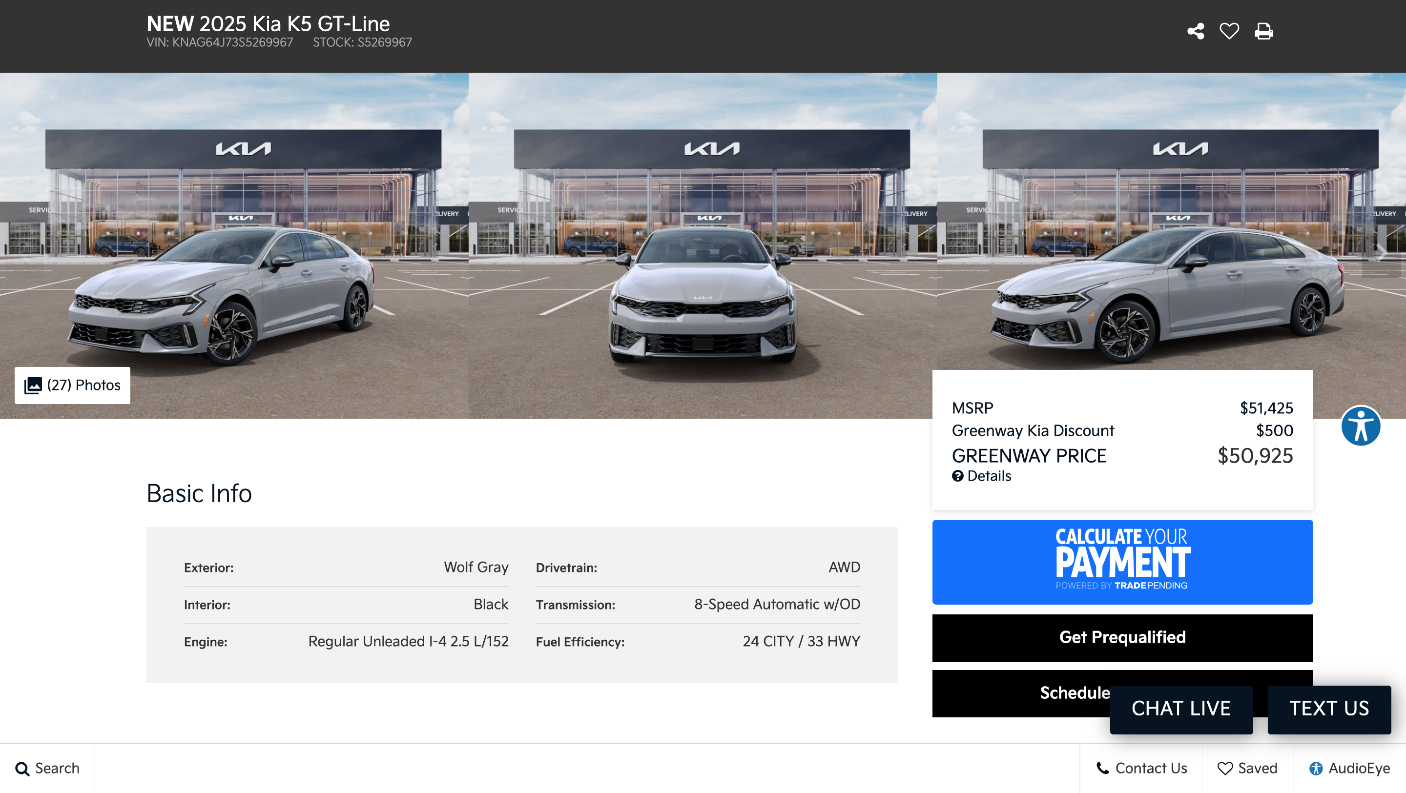 One of the most annoying things dealers who mark up their vehicles do is to make sure the window sticker is not available online. That way, you can't figure out how much of a ride they're taking you for. Luckily through the vehicle description, you can usually find out a vehicle's MSRP. This markup at Greenway Kia of West Palm Beach, Florida is especially egregious as it's a K5 GT-Line, which wears an MSRP of $33,240, meanwhile you'll pay $50,925 for this all show no go K5.