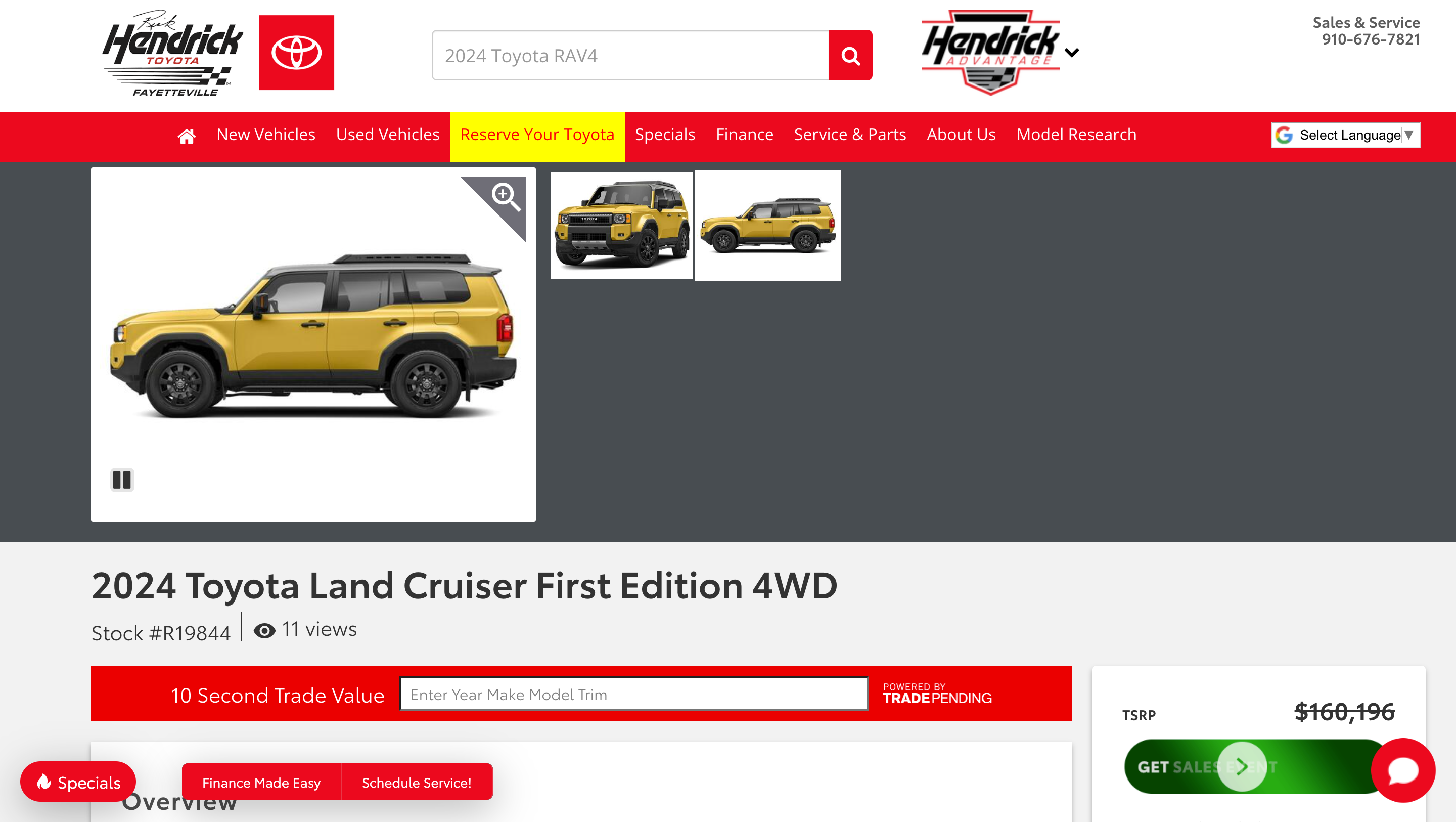 The new Land Cruiser is another vehicle I've yet to see out on the roads. Hendrick Toyota of Fayetteville, North Carolina is the worst when it comes to Land Cruiser markups. One of five Land Cruiser First Editions in the dealer's inventory wears a massive $160,196 price tag. Taking into account the First Edition's MSRP of $76,695, this means Hendrick has hit this thing with a markup nearly equal to the price of the vehicle itself.
