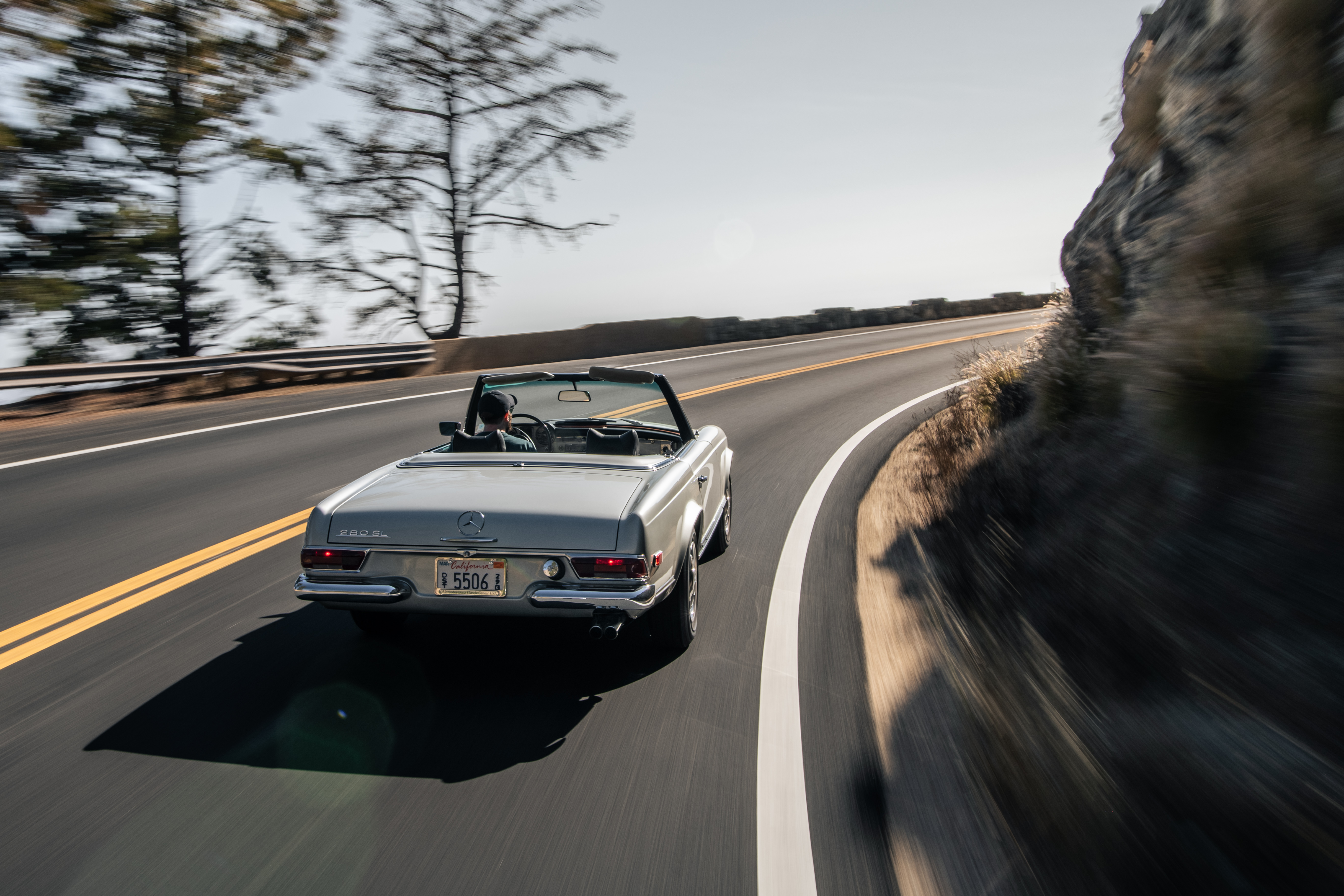 I am rapidly approaching that life stage — okay, I'm there — and after spending time boulevarding along Highway 1 in Big Sur behind the thin-rimmed, gigantic wheel of a low-mileage 1968 Mercedes 280 SL "Pagoda," I've decided to relinquish the bohemian life of the writer and think up a profitable scam so that I can buy one.