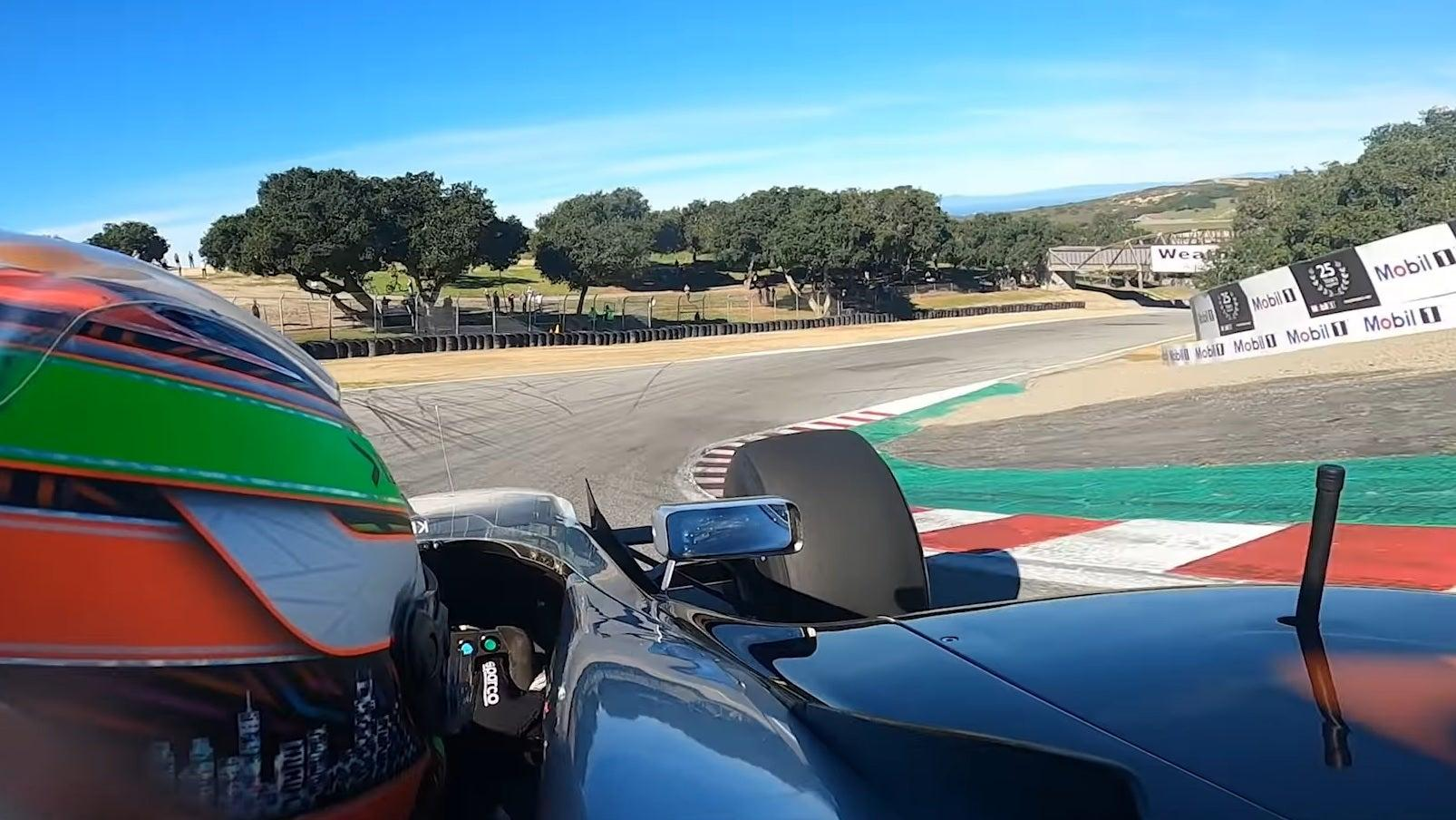 As captured with video onboard by Racer Magazine's YouTube channel, the McLaren IndyCar phenom O'Ward was hardly holding anything back. The young Mexican driver drove the vintage F1 car to a 1:10.3 lap after just a few short sessions aboard. While this is still some seconds off of Marc Gene's outright lap record at the track, set in a Ferrari F2003 back in 2012, it's still mighty impressive. And it's just shy of a second quicker than O'Ward's own best time at Laguna Seca earlier this year in IndyCar. Here are the details, thanks to Racer's Marshall Pruett.