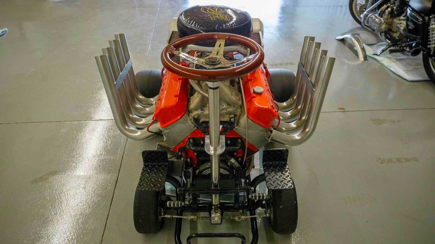Sweetening the deal is that the power reaches the ground through adorable little tires. Thankfully, top speed is limited to just 25 mph thanks to a hydrostatic transmission. But even if you don't manage to kill yourself at such slow speeds, you'll probably go deaf from the open headers flanking your sides.