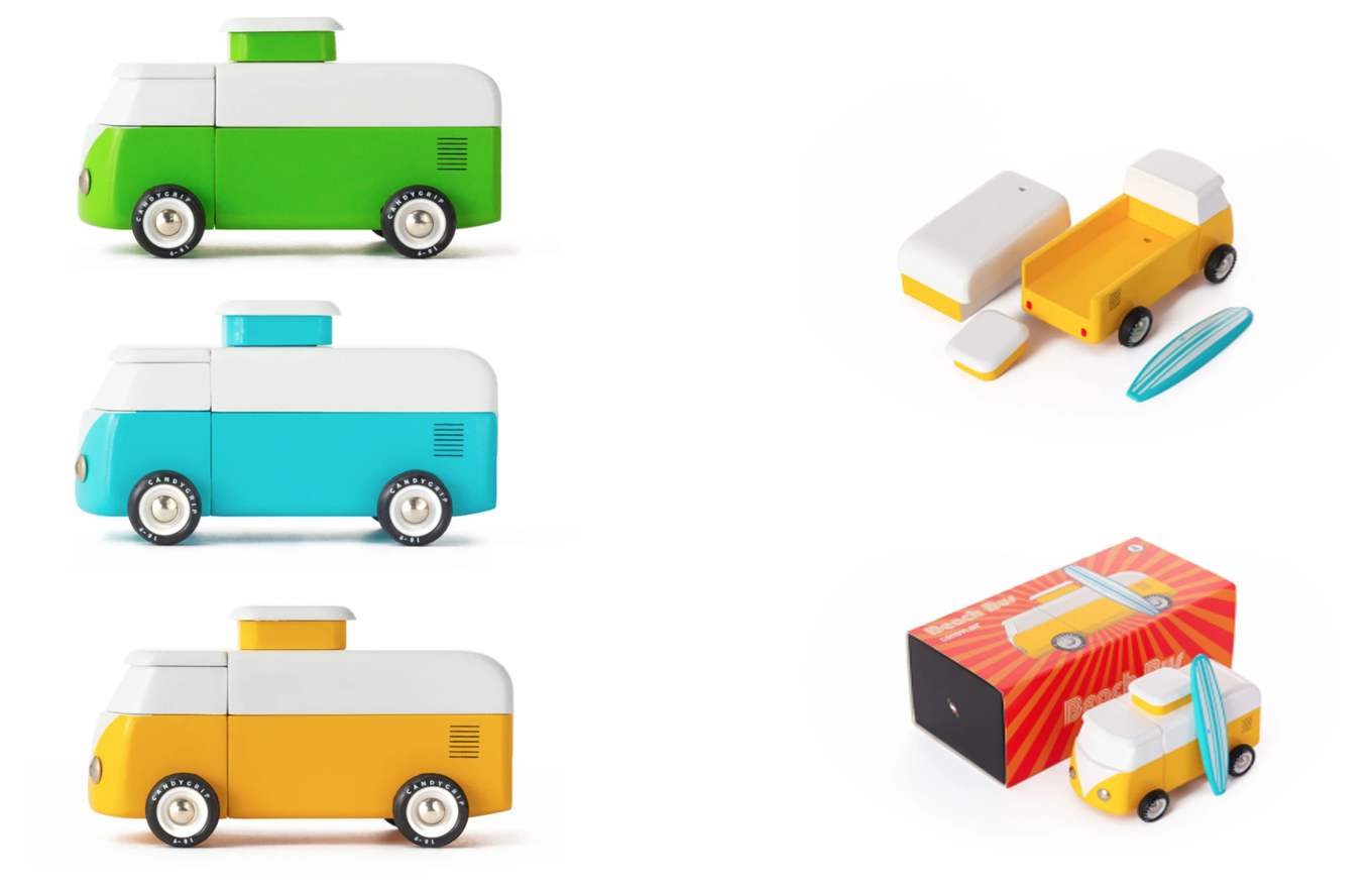 Now, I didn't want just any toy bus, I wanted it to have a bit more going on, a little something surprising to make it more fun. That's why I thought it would be cool to make it a sort of three-in-one design: the basic toy would be a single-cab pickup, but you could pop on a little magnetic module to transform it into a bus or van, and another little magnetic bit could pop on to make it a camper, with a pop-top.