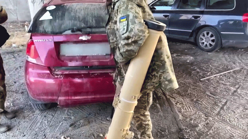 Interviewed beside a burning grocery warehouse in the suburban town of Brovary, the lieutenant popped the hatchback to reveal a beige tube, holding a Stugna-P missile. It has a range of three miles and hits a target within a diameter of one foot.