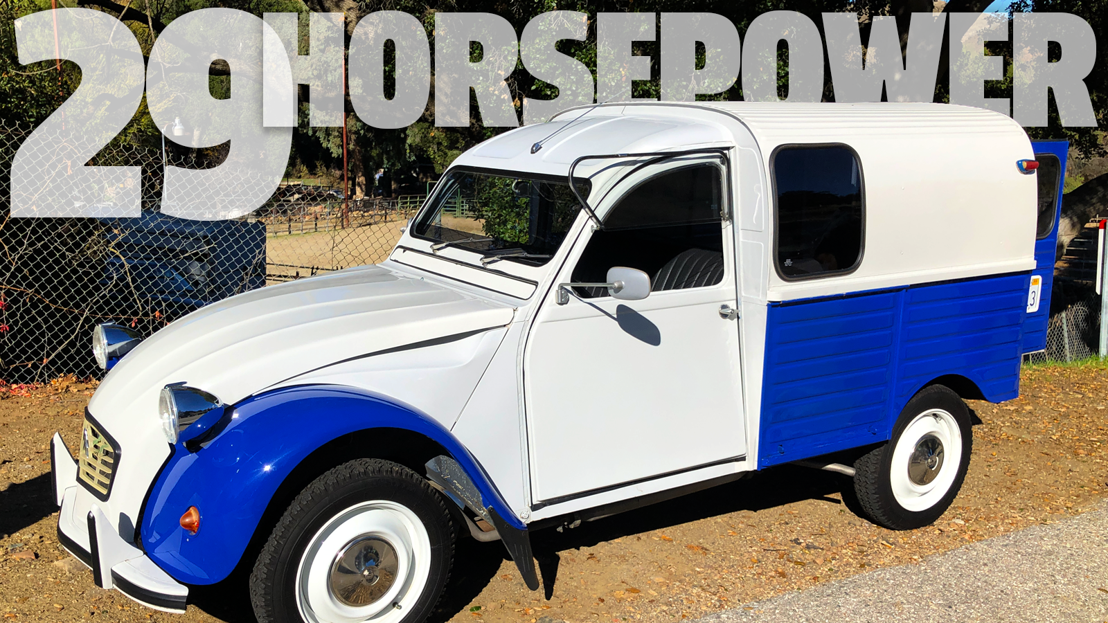 2CV is short for deux chevaux-vapeur, which essentially translates to "two tax horsepower." To be clear, the car never had two horsepower; when it first came out in 1948 it had nine. Deux chevaux was the vehicle's tax classification based on an equation that France used to determine how much tax was due at registration. The tax was originally a function of engine bore, stroke, RPMs and number of cylinders. The first 2CVs had a 375 cc flat-twin engine resulting in a low tax, and the car itself was about half the cost of an average American car at the time due to it being the most basic, bare-bones car possible.