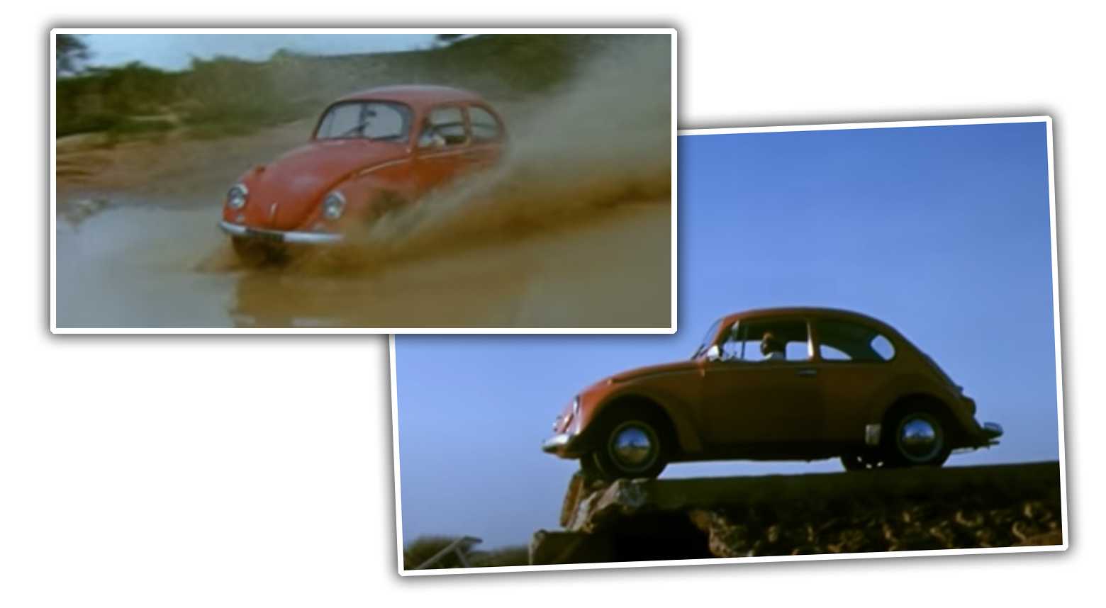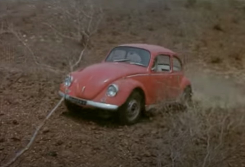 There must have been some sort of budget for this movie, because they do trash the Beetle they're using by driving it down a cliffside: