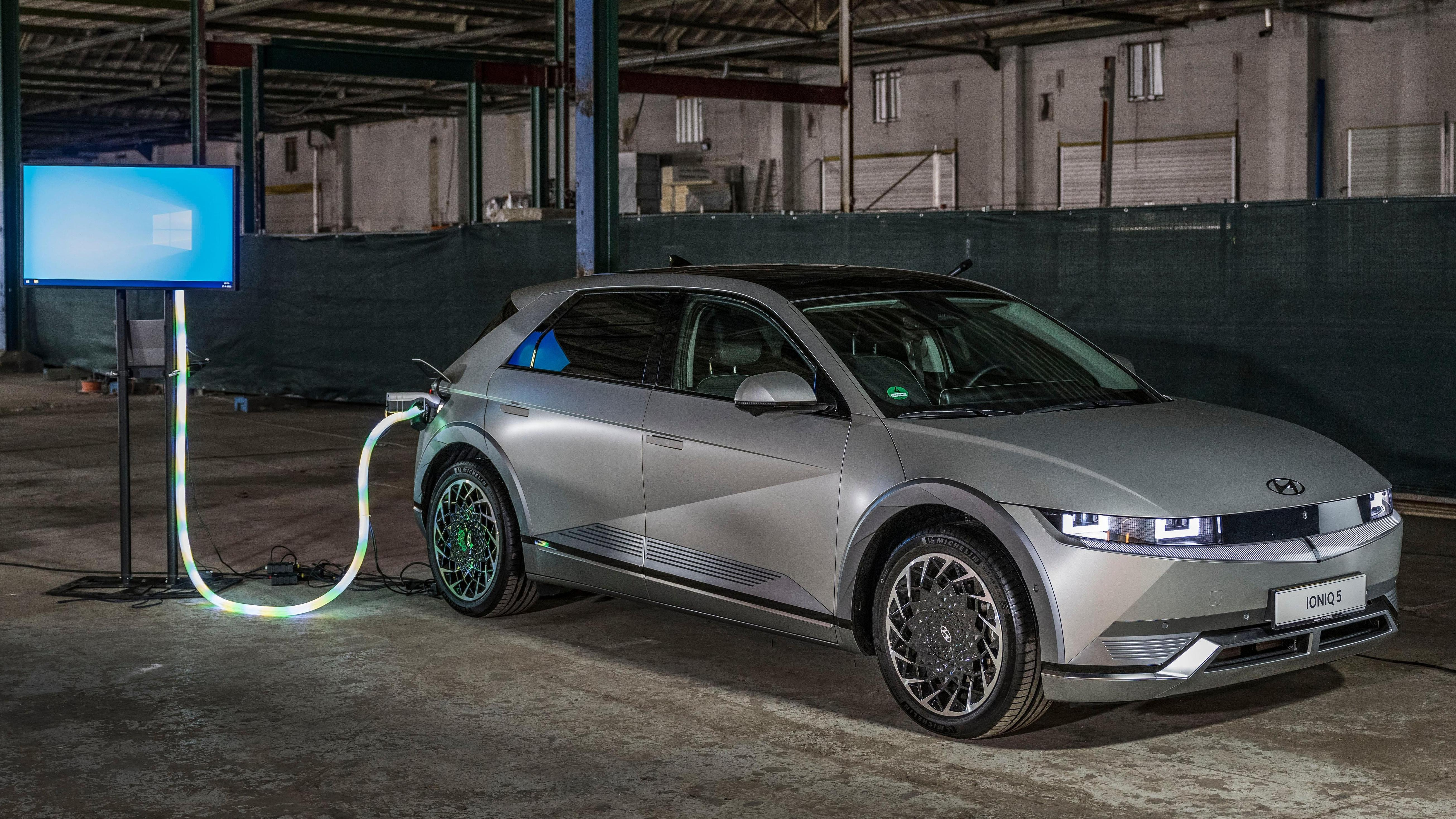 Contrary to what the picture suggests, the Ioniq 5 will not run Windows 10 but it will turn into a public power plant when V2G yields decentralized energy.