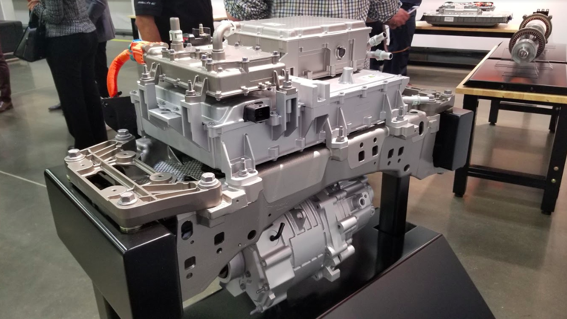 Ford says the motors are custom designed, and that the larger one cools its stator with oil, which is sent through an oil-to-coolant heat exchanger. The smaller motor, Ford told me, features simply a water jacket, presumably around the outside of the motor housing. According to Ford, special valving allows for the heat from the motors and power electronics to be used to warm battery cells (there's also a resistance-style heater to help with that).