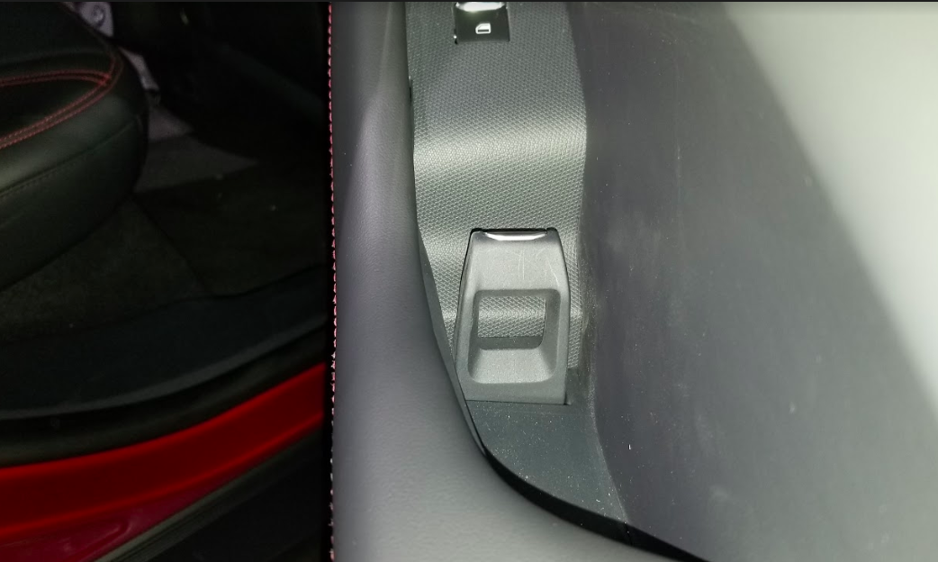 As for getting out of the vehicle when there's an electrical failure and the electronic door latches no longer work, the front two doors feature tiny handles that you can pull back a bit to actuate the electric latch or pull back farther to actuate a mechanical release.