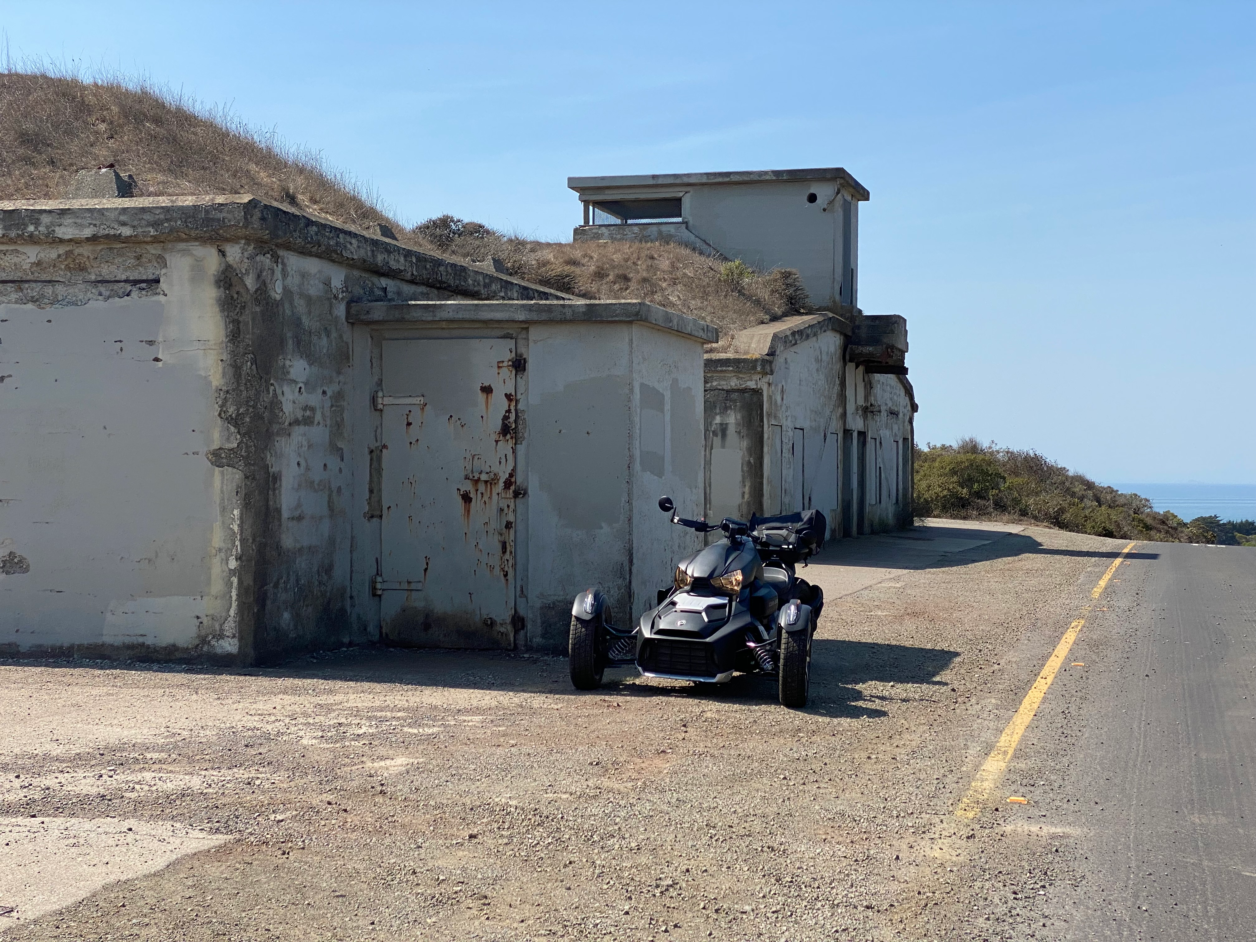 I took off from the viewpoint into the Marin Headlands, a gorgeous region with narrow roads and stunning views, punctuated with old military structures. It was here that I learned the Rally part of this Ryker doesn't mean high ground clearance.