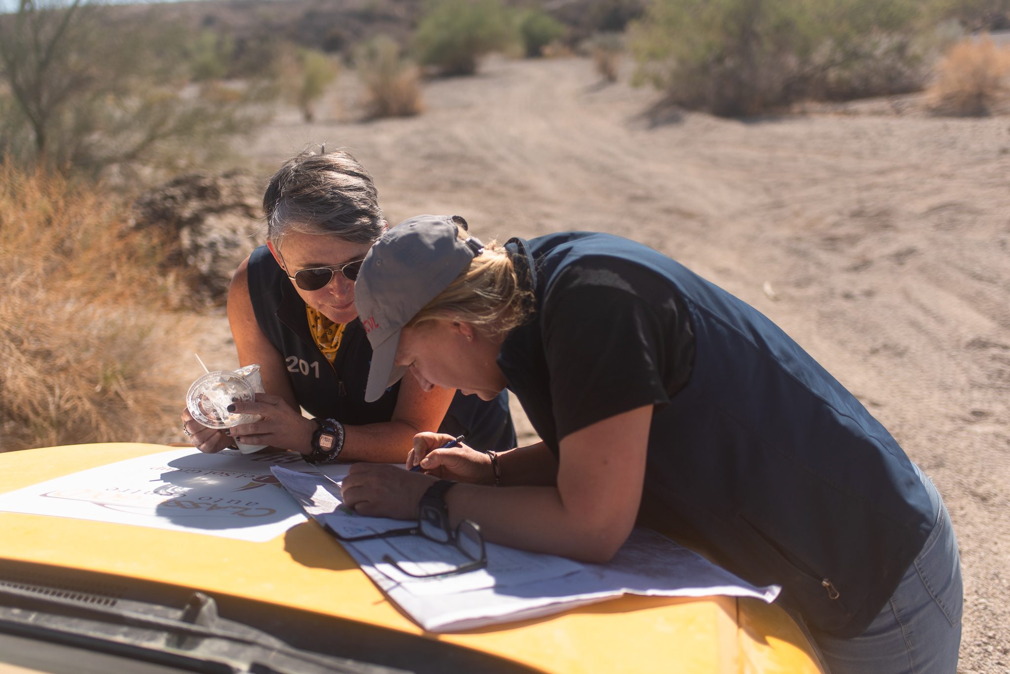 My days all week have began at the same time as the competitors, waking to Emily's cowbell alarm at the ungodly hour of 5 a.m. Our day for this specific stage started on the banks of the Colorado River, in Needles, California. I had a map for the day on my phone, but of course the women competing had no such luxuries; all devices are confiscated and the only directions that are allowed are from paper maps and each stage's course headings and checkpoint guides.